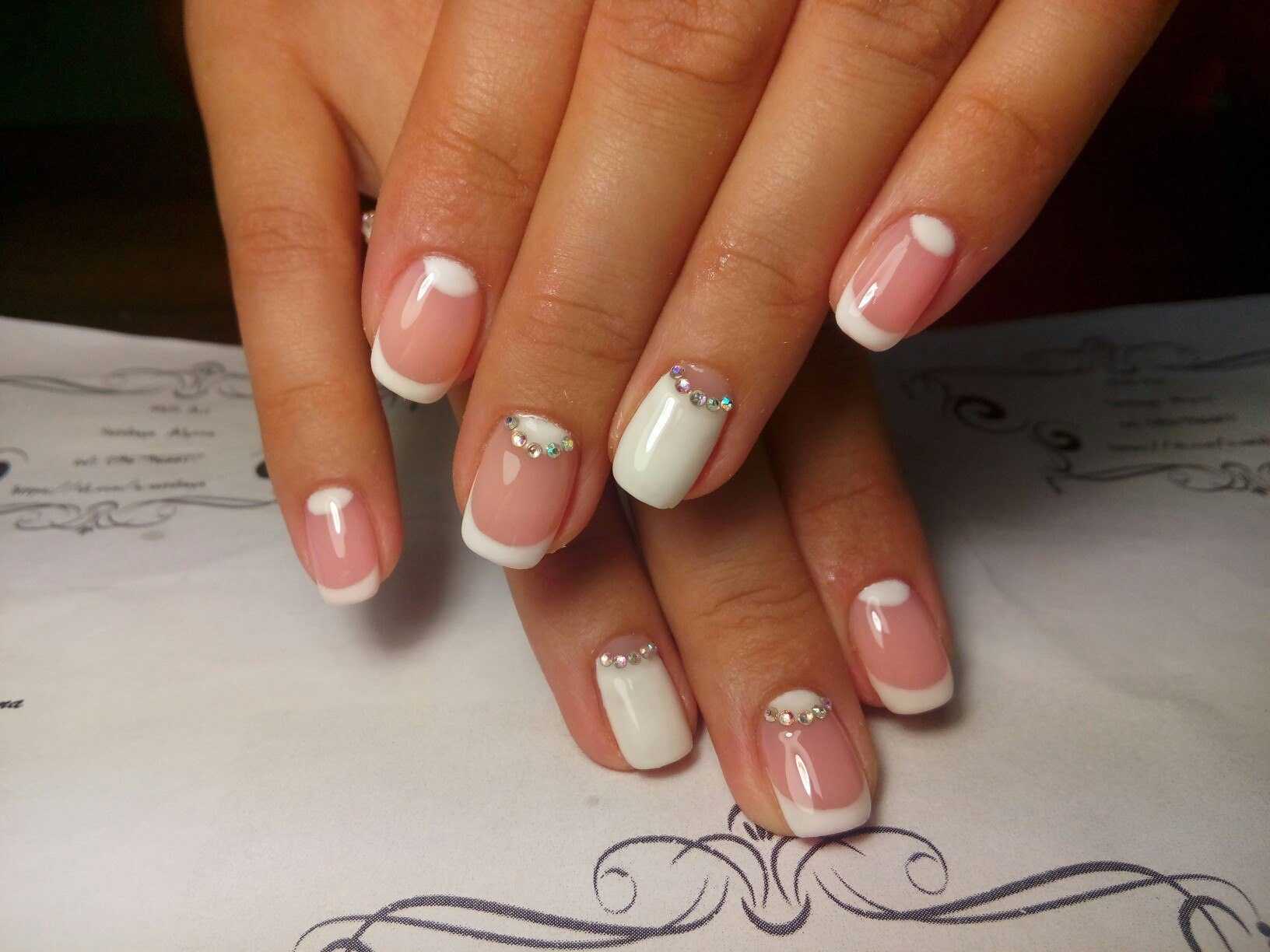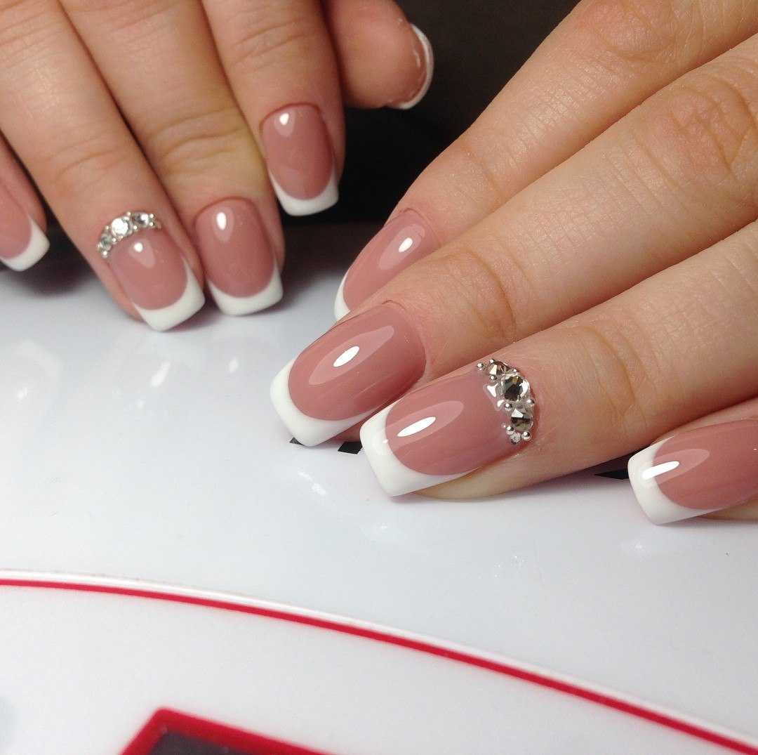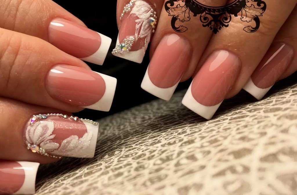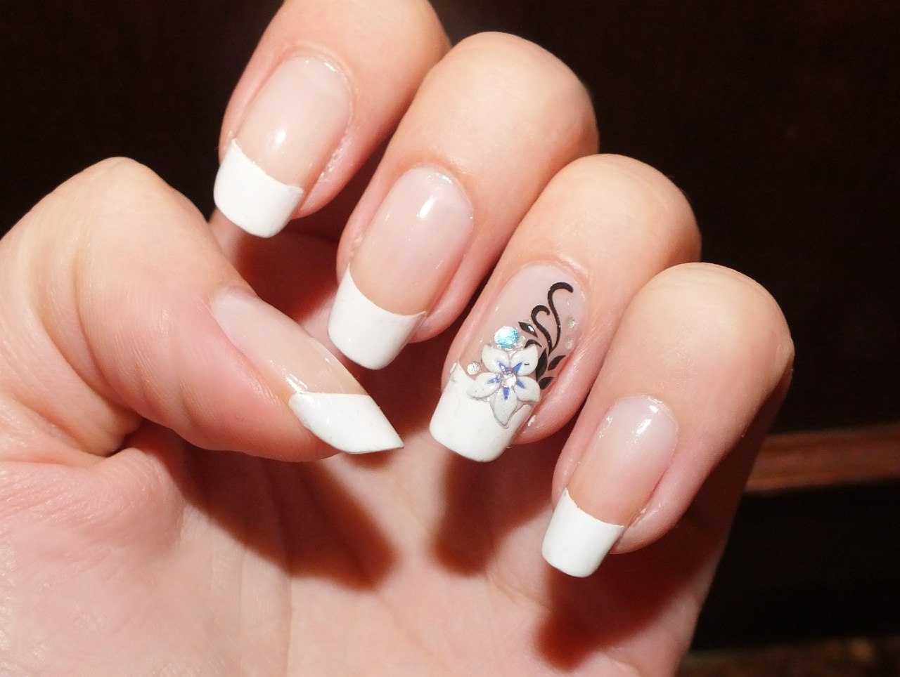 Элементы декора для белого французского маникюра подчеркивают нежность, женственность. Такие дизайны идеально подходят для свадьбы, других торжественных мероприятий. Лучшие идеи с рисунками и декоративными элементами: