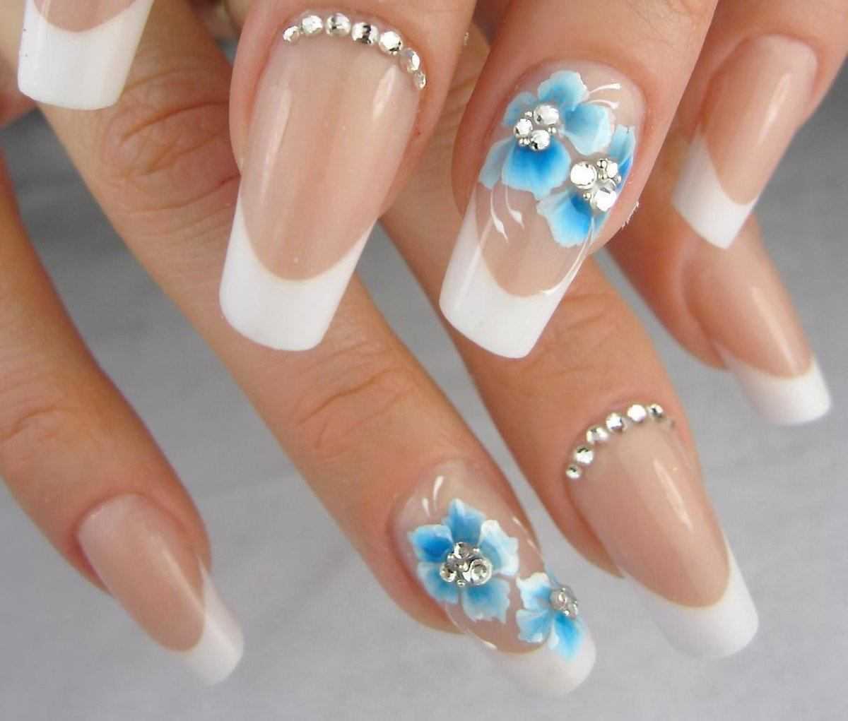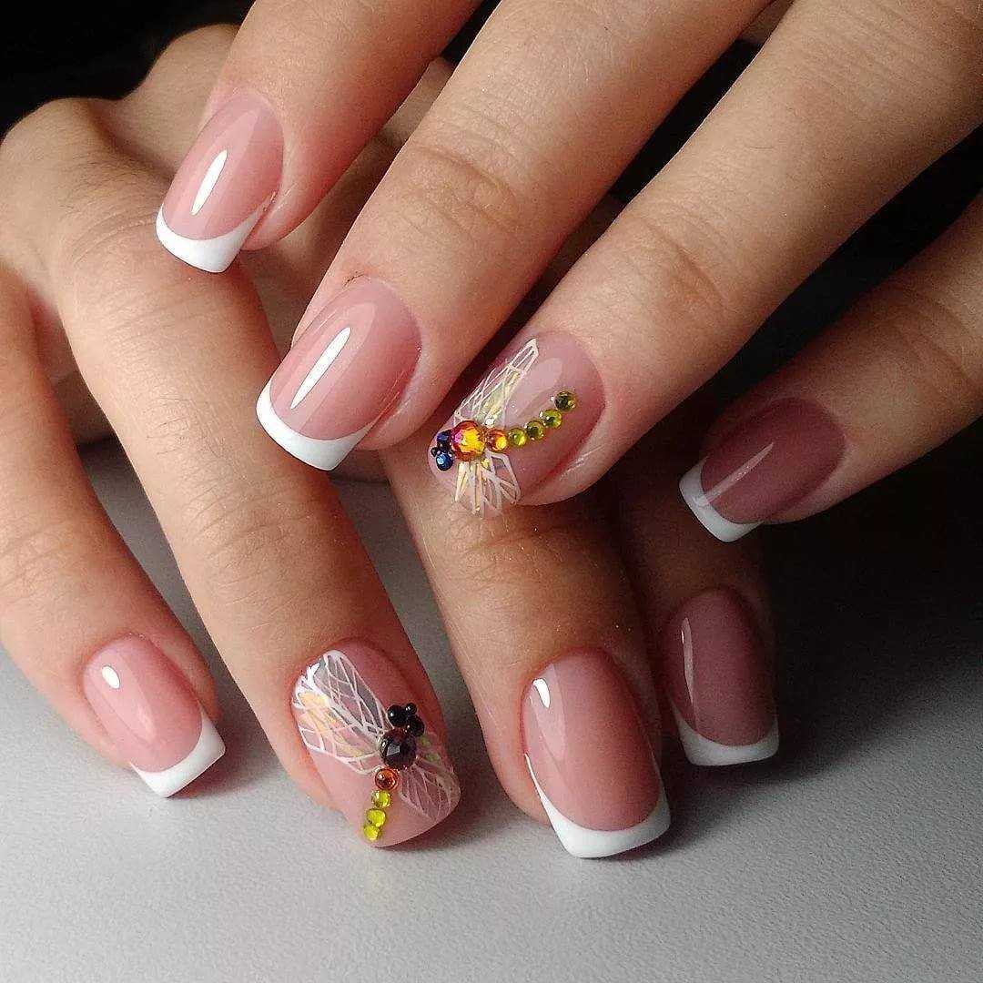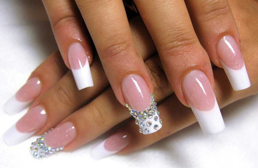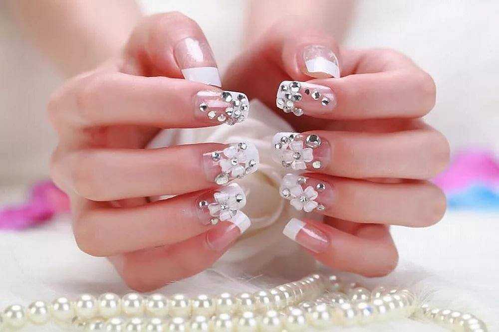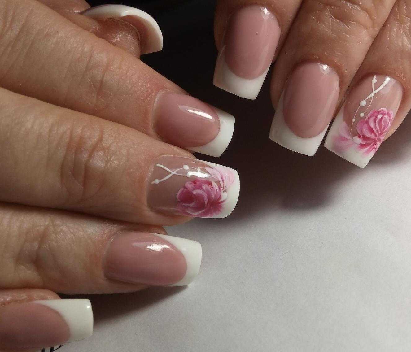 Элементы декора для белого французского маникюра подчеркивают нежность, женственность. Такие дизайны идеально подходят для свадьбы, других торжественных мероприятий. Лучшие идеи с рисунками и декоративными элементами:
