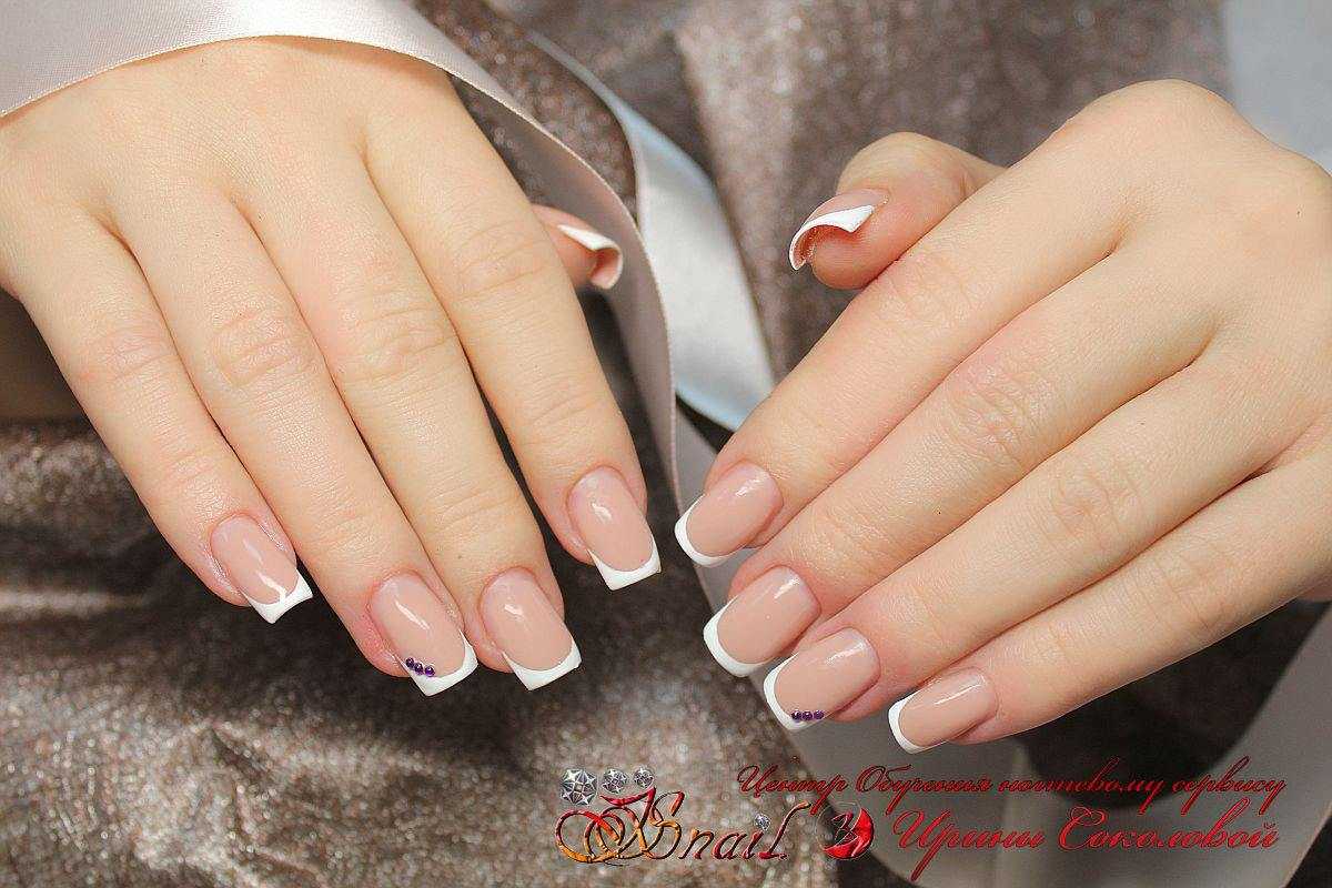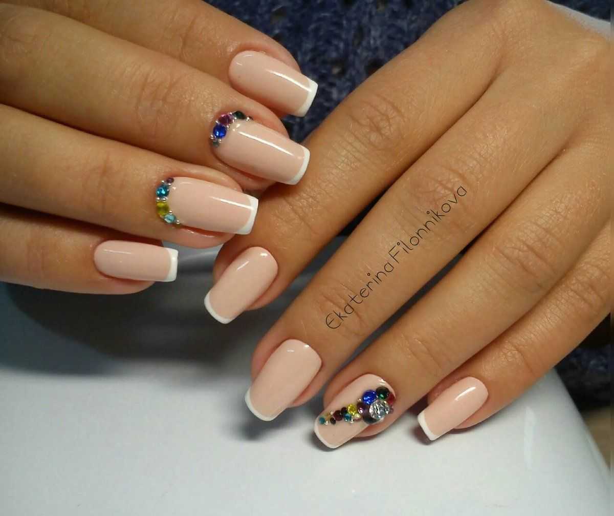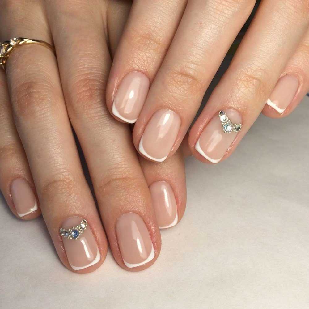 Нюдовый френч — это вариант близкий к классике. Так получается сделать аккуратные естественные ноготки. Французский дизайн в нюдовых тонах можно дополнить любым видом декора.