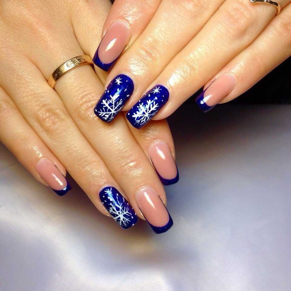Серебристая улыбка наиболее актуальна в зимний период. Это сверкающие снежинки, холодный блеск которых не греет, но зачаровывает. Серебром в таком маникюре можно оформить и лунный дизайн.