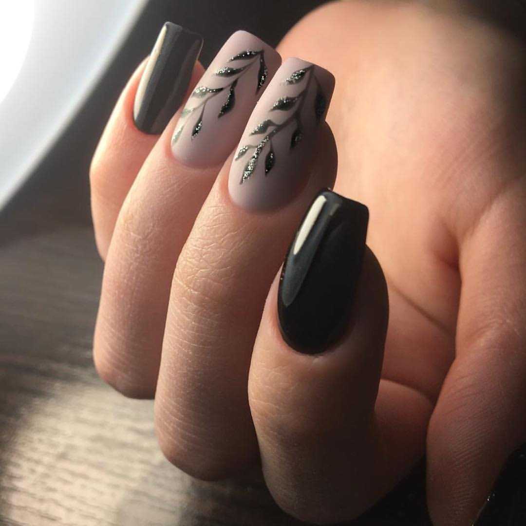- Дизайн получится более изящным, если вы закрасите каждый листик контрастным или блестящим лаком.