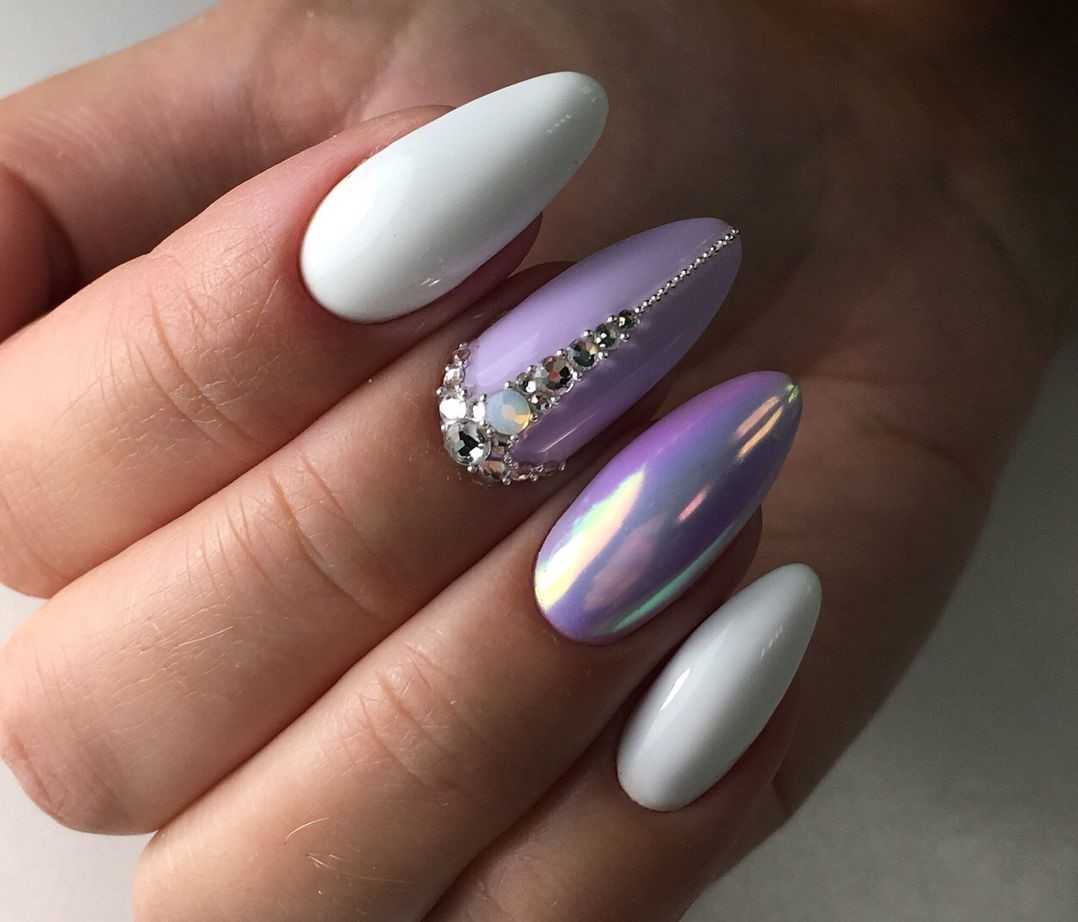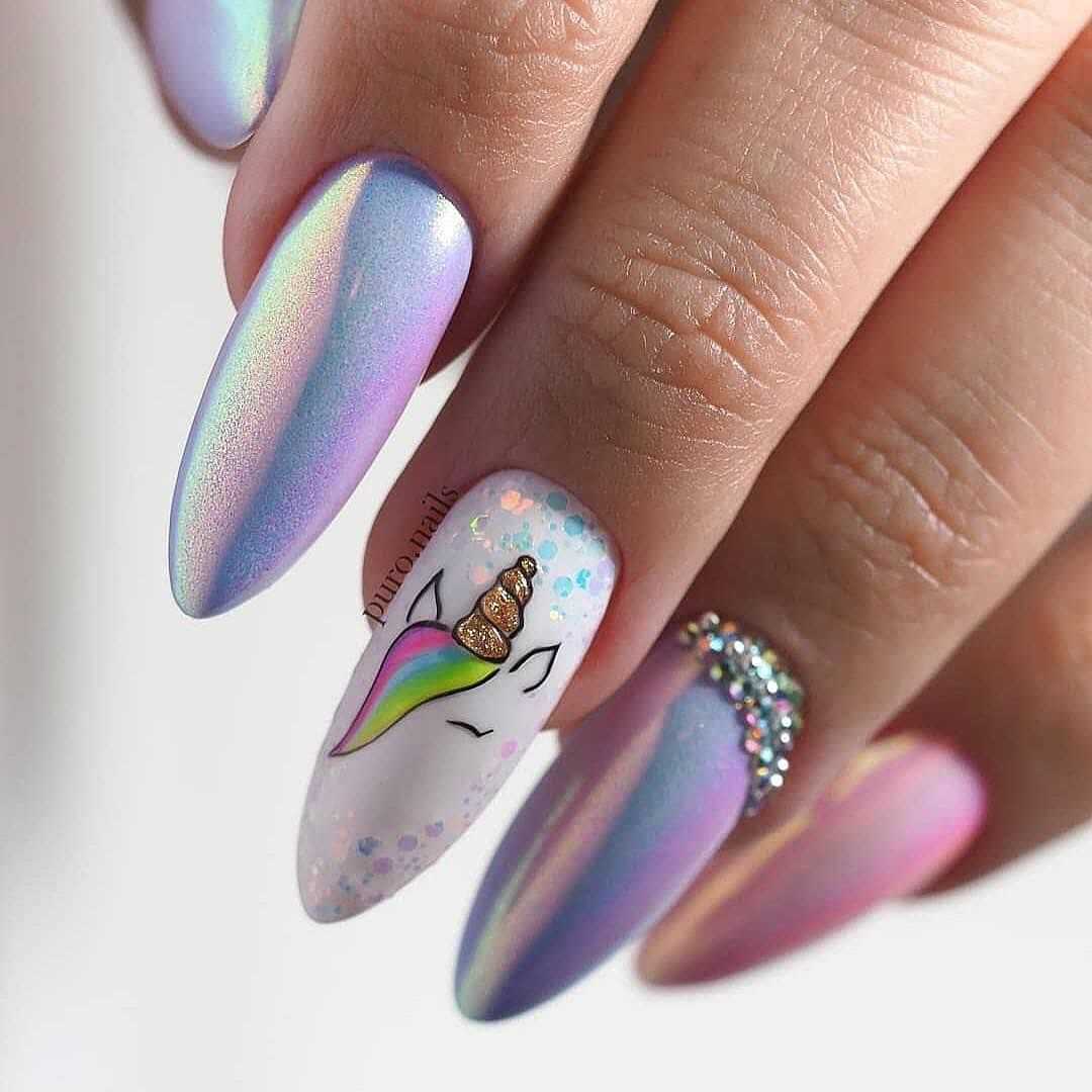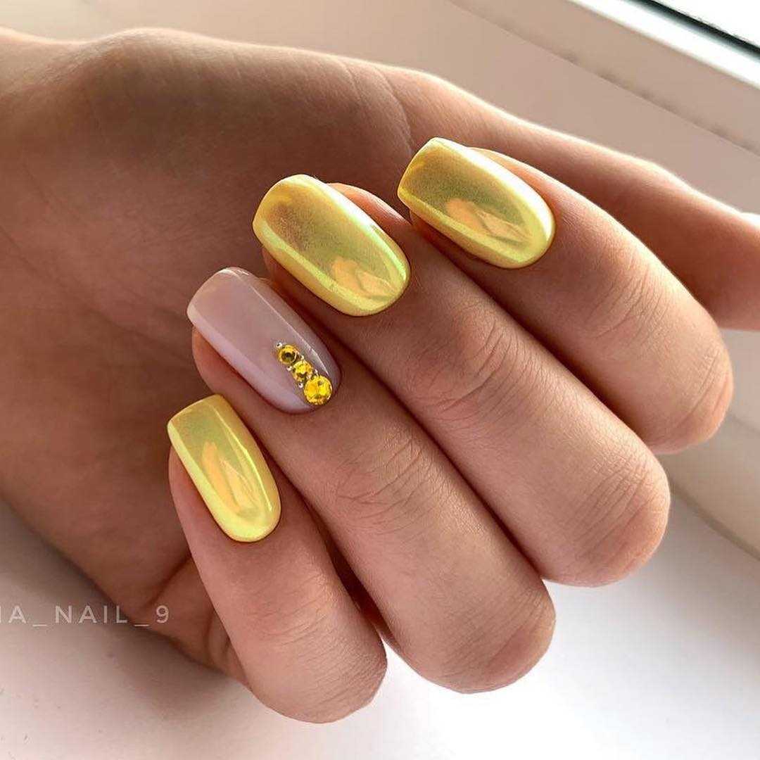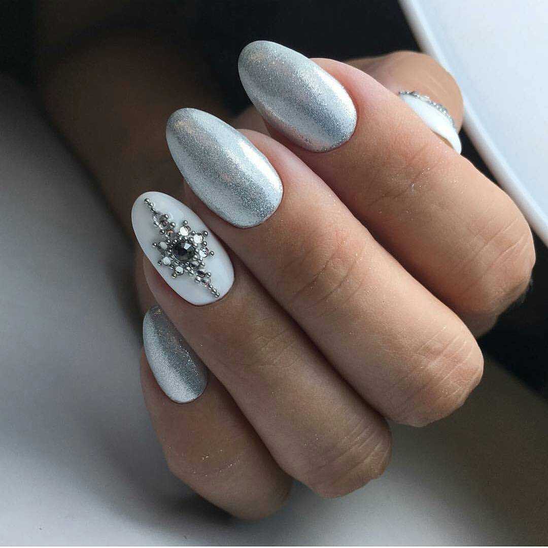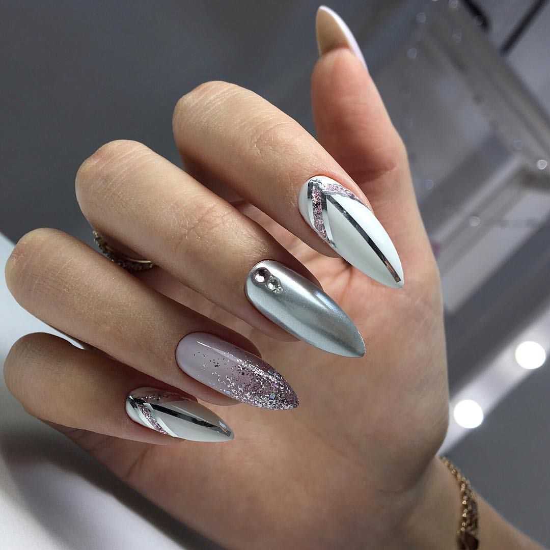 Зеркальный маникюр 2020 не ограничивается одним лишь покрытием. Часто его дополняют тем или иным декором, рисунком, перекрывают матовым топом.