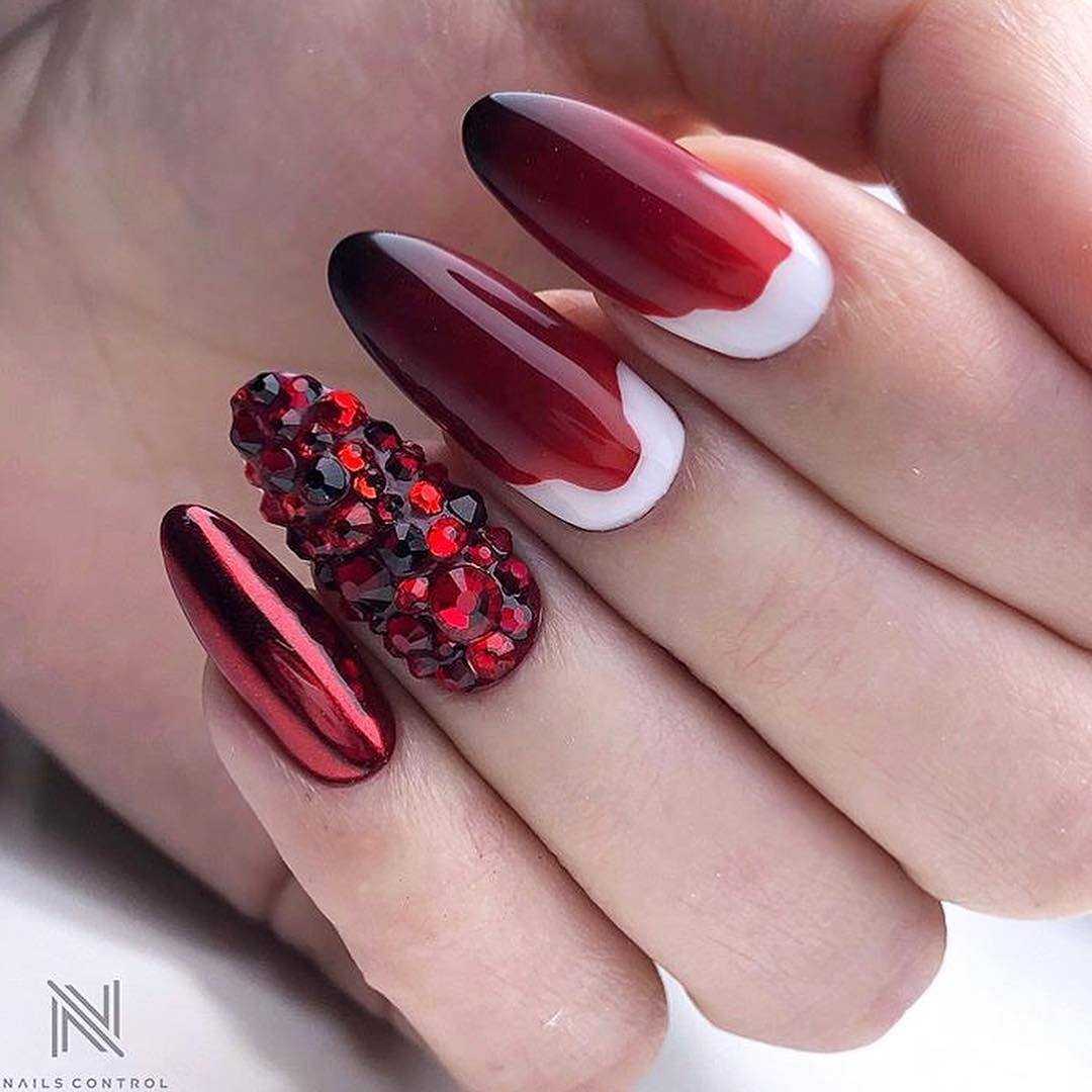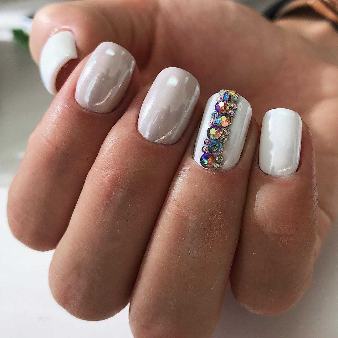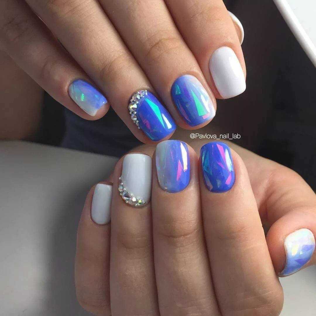 Современный маникюр отличается активным использованием страз, геометрических рисунков, сверкающими и переливающимися эффектами, сочетанием различных необычных техник и комбинаций.