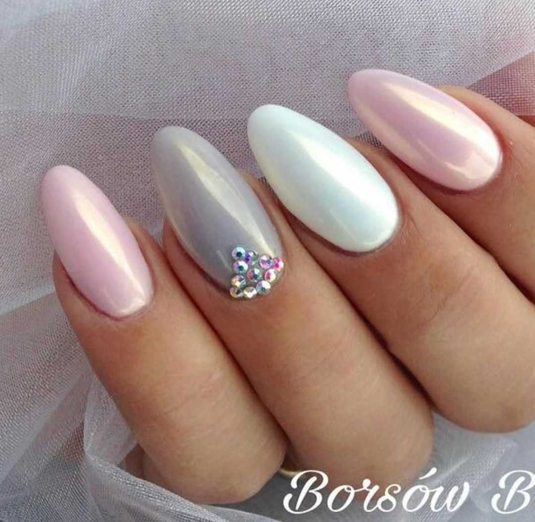К нежным оттенкам относится вся пастельная цветовая палитра, многочисленные оттенки бежевого, серого, белого и других мягких тонов. Для выполнения нежного маникюра используйте серебряную, голографическую, зеркальную и другие разновидности втирки. Конечный вид маникюра будет зависеть от выбранного фона. Если вы не уверены в результате, то попробуйте сначала выполнить маникюр на типсах.