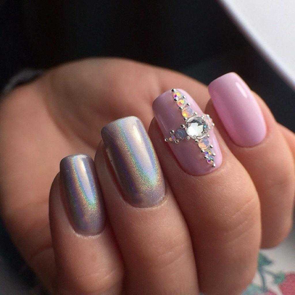 - декор можно использовать на 1 – 2 ногтях, в этом случае лучше будет смотреться зеркальная или голографическая втирка;