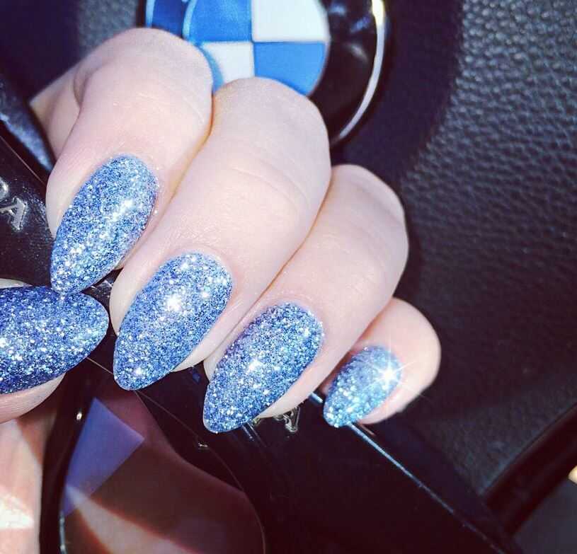 Лаки с глиттерами можно использовать для создания красивых мерцающих дизайнов. Их можно наносить на весь ноготь или только на его кончик. Блесток в лаке меньше, чем в блестящей гель-краске или «жидкой слюде», но они крупнее, чем шиммер, и создают более выраженное сияние. В продаже можно найти гель-лаки и обычные декоративные лаки с глиттером.