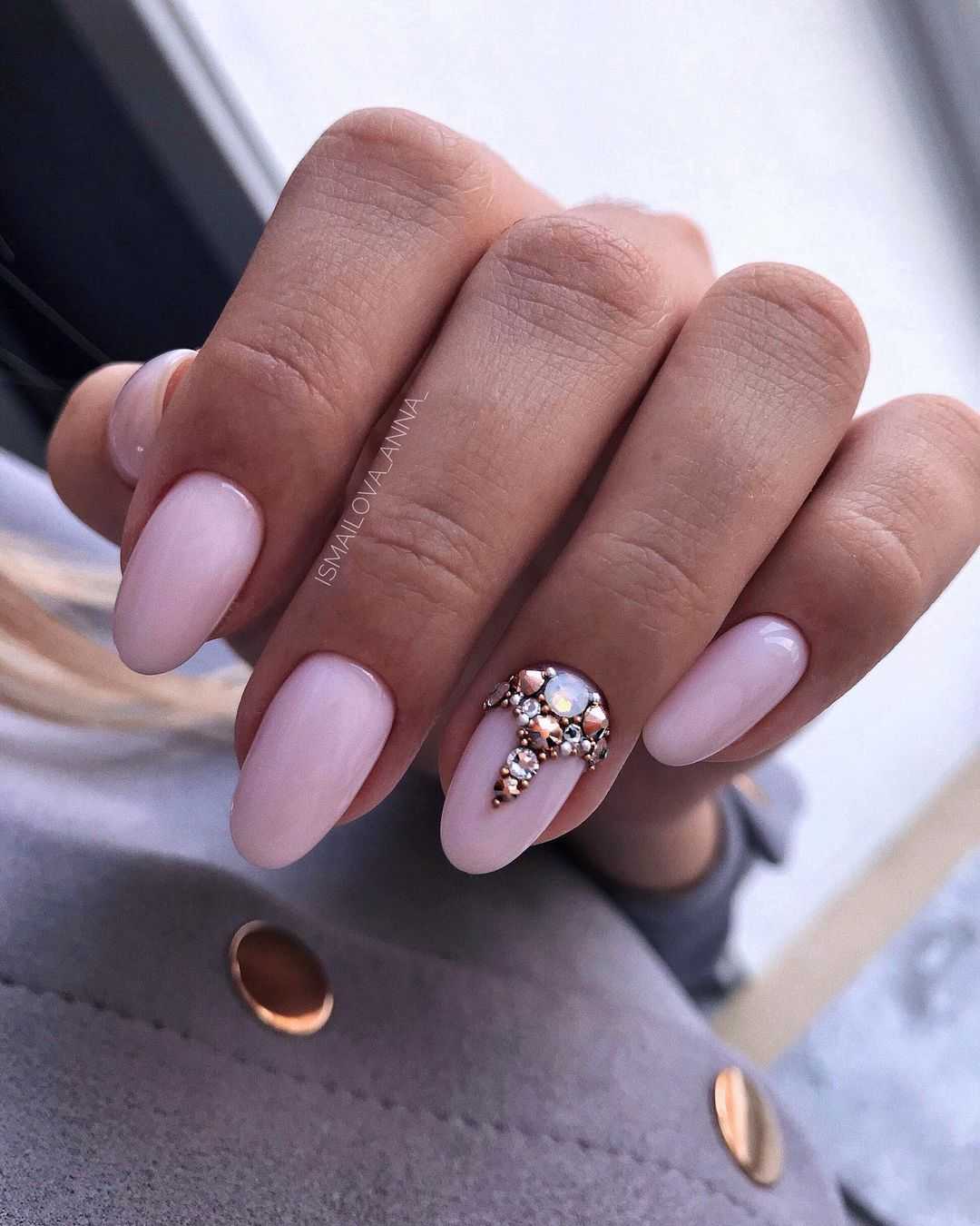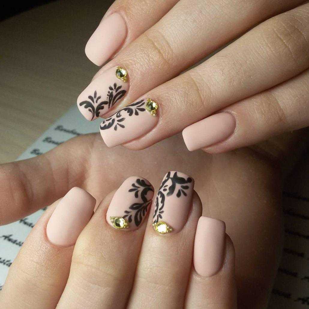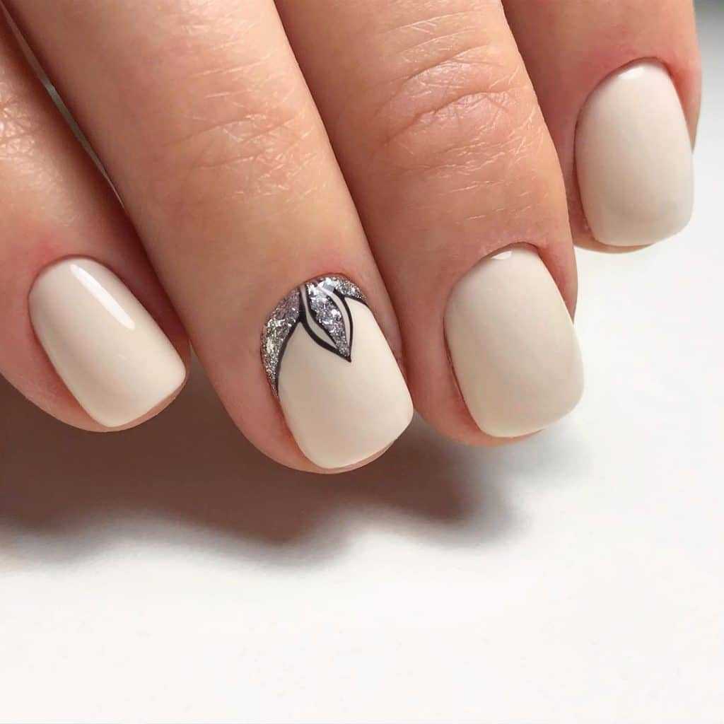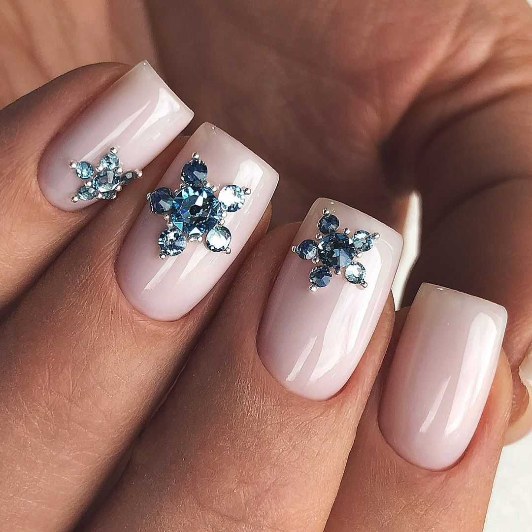 Стильные варианты оформления маникюра беж со стразами и блёстками