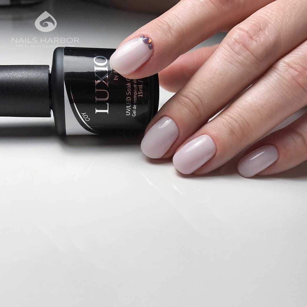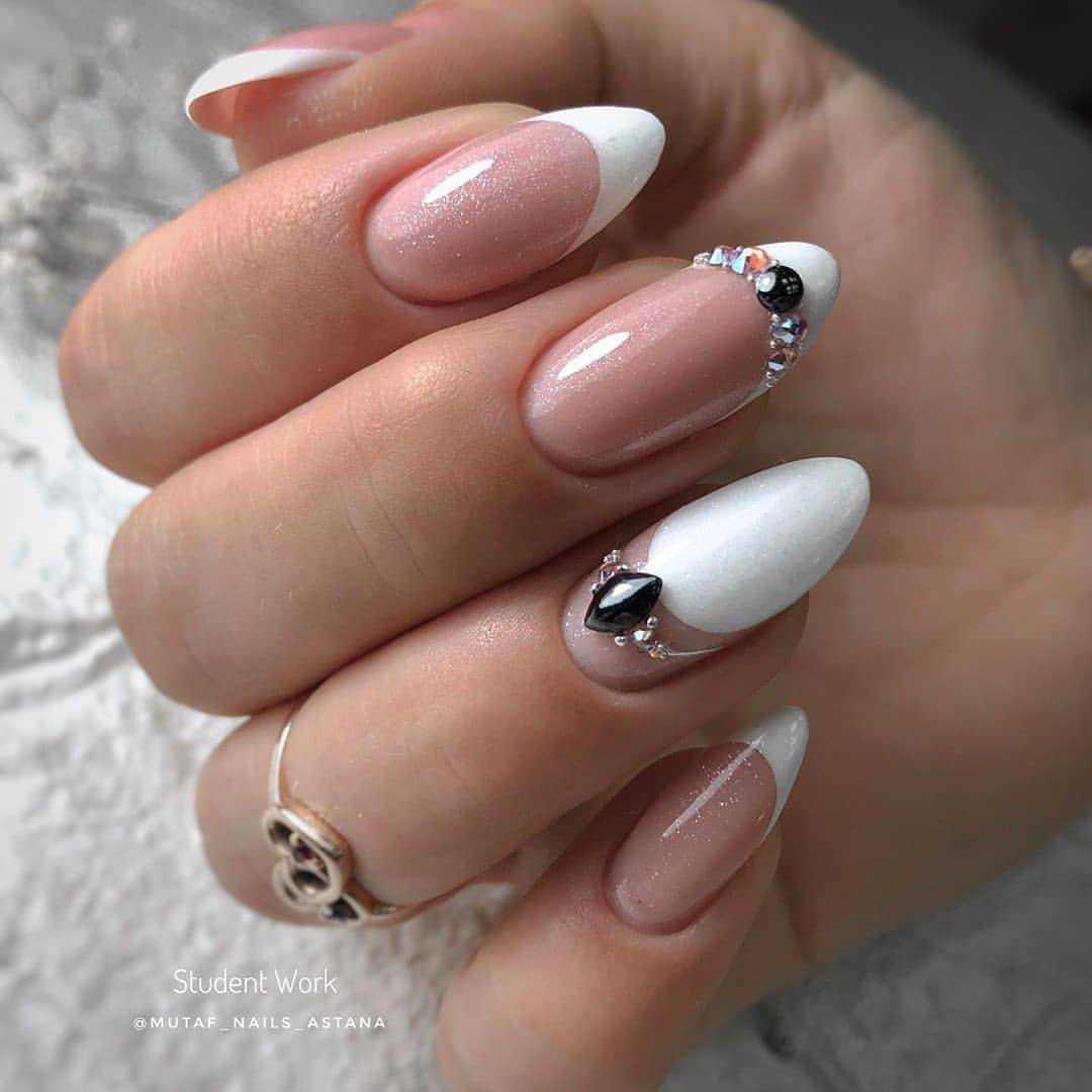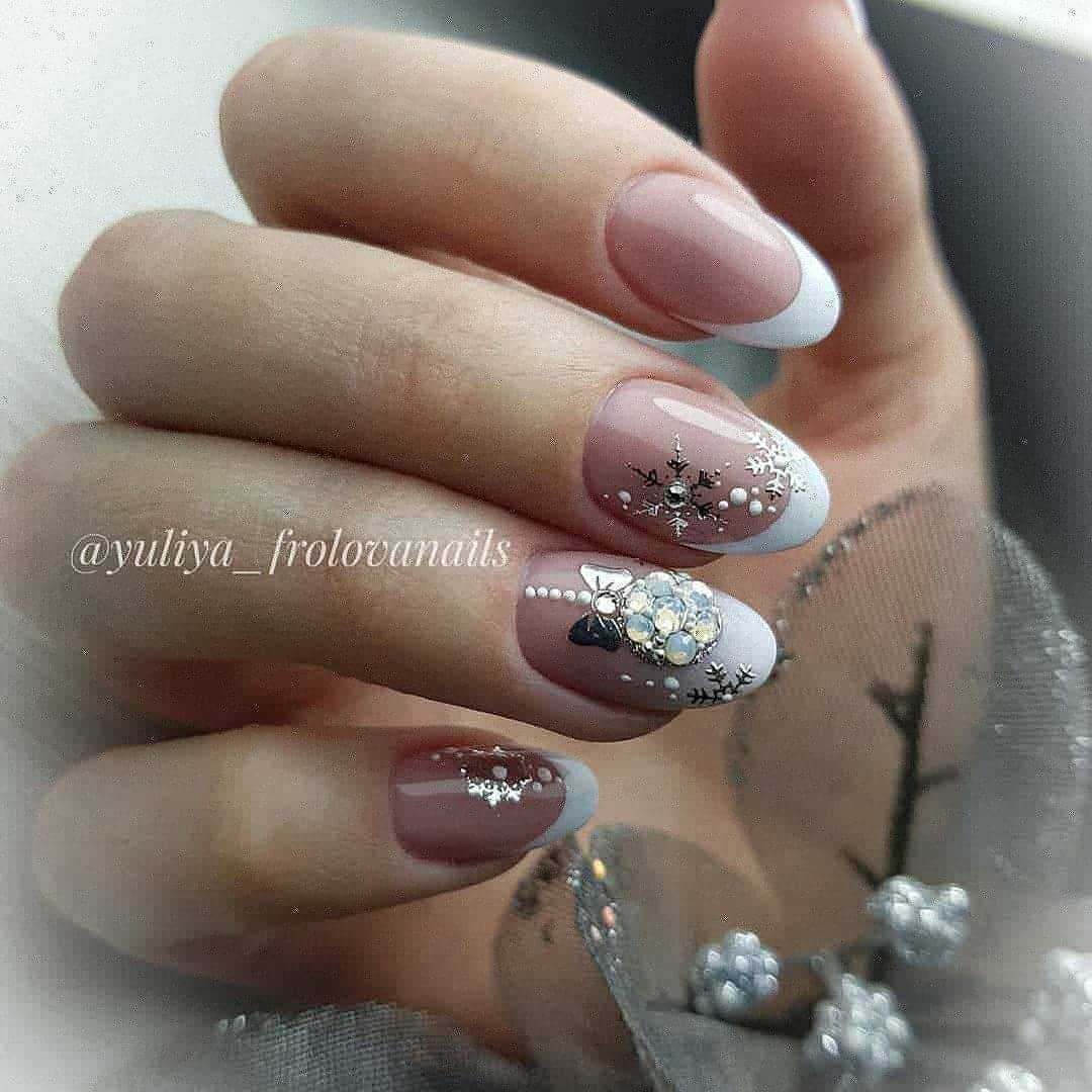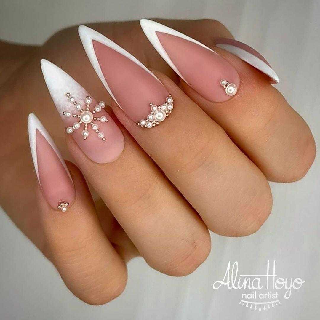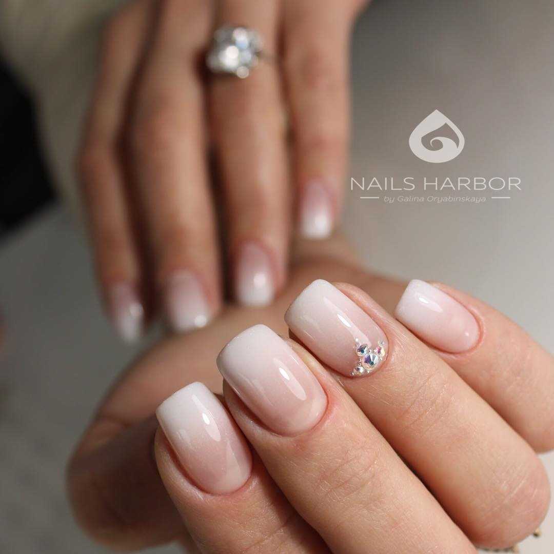 Стильные варианты оформления маникюра беж со стразами и блёстками