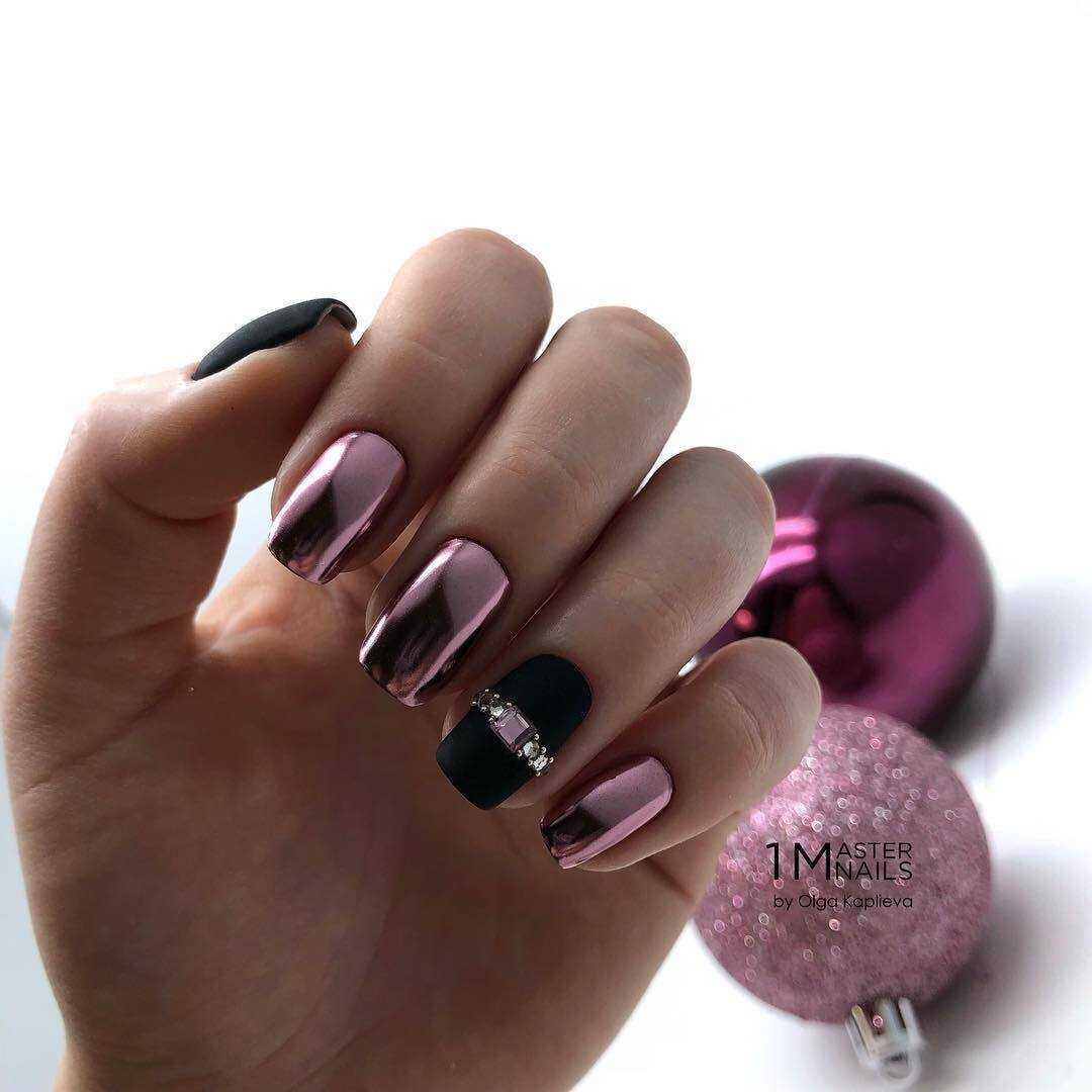 Ещё совсем недавно чёрный лак использовался только в качестве прорисовки мелкий деталей в дизайне ногтей или дополнял образы представителей различных субкультур. Однако современные дизайнеры сумели рассмотреть в его глубине нотки элегантности и благородства, и в наши дни маникюр в чёрных тонах считается показателем хорошего вкуса. Особенно если речь идёт о сочетание столь тёмного основания со стразами. Украшения в этом случае преображают и освежают покрытие, а сам цвет чудесно подчёркивает сияние и структуру декора.