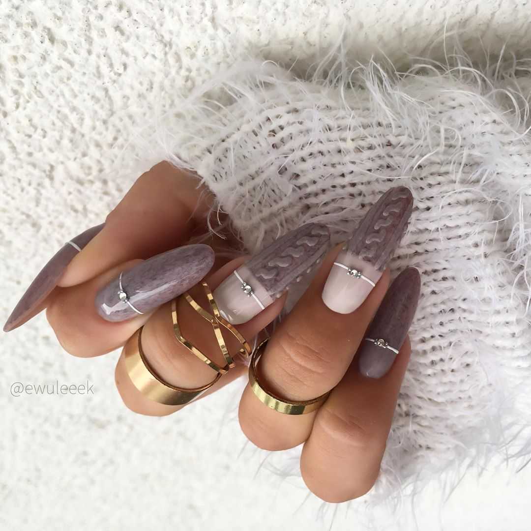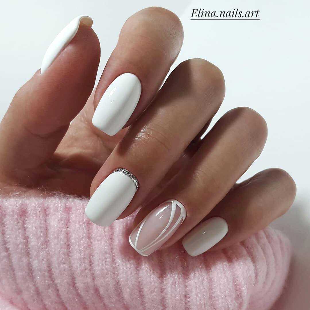 Любительницы сдержанного дизайна практически всегда выбирают геометрическое оформление. Линии разной толщины, фигуры, а также их сочетание может быть лаконичным и еле заметным или же крупным. Это зависит от выбранного цвета для нанесения рисунка, а также количества деталей. Немаловажную роль играет основной фон и наличие дополнительного декора. То есть это могут быть только стразы или же сочетание с фольгированными деталями.