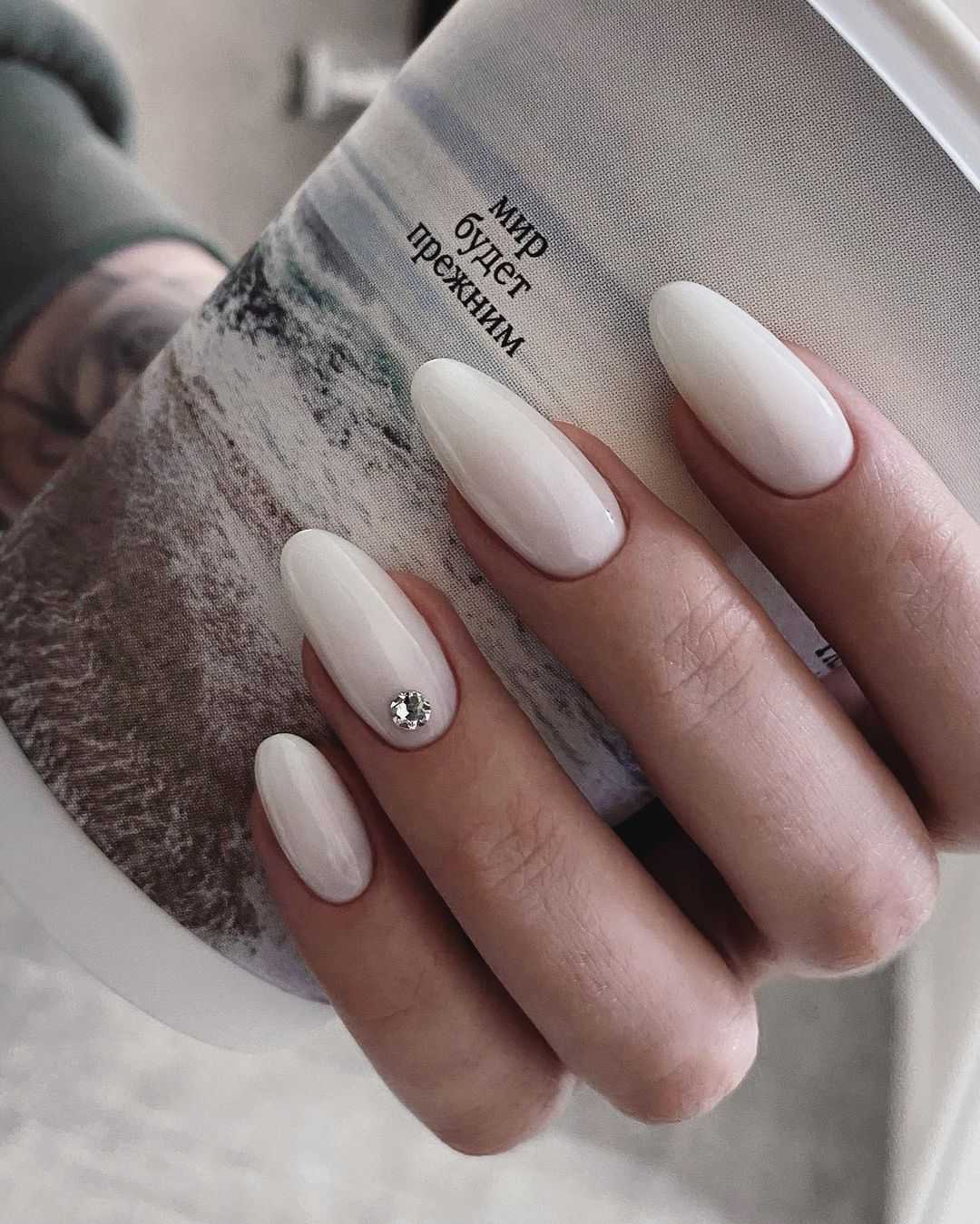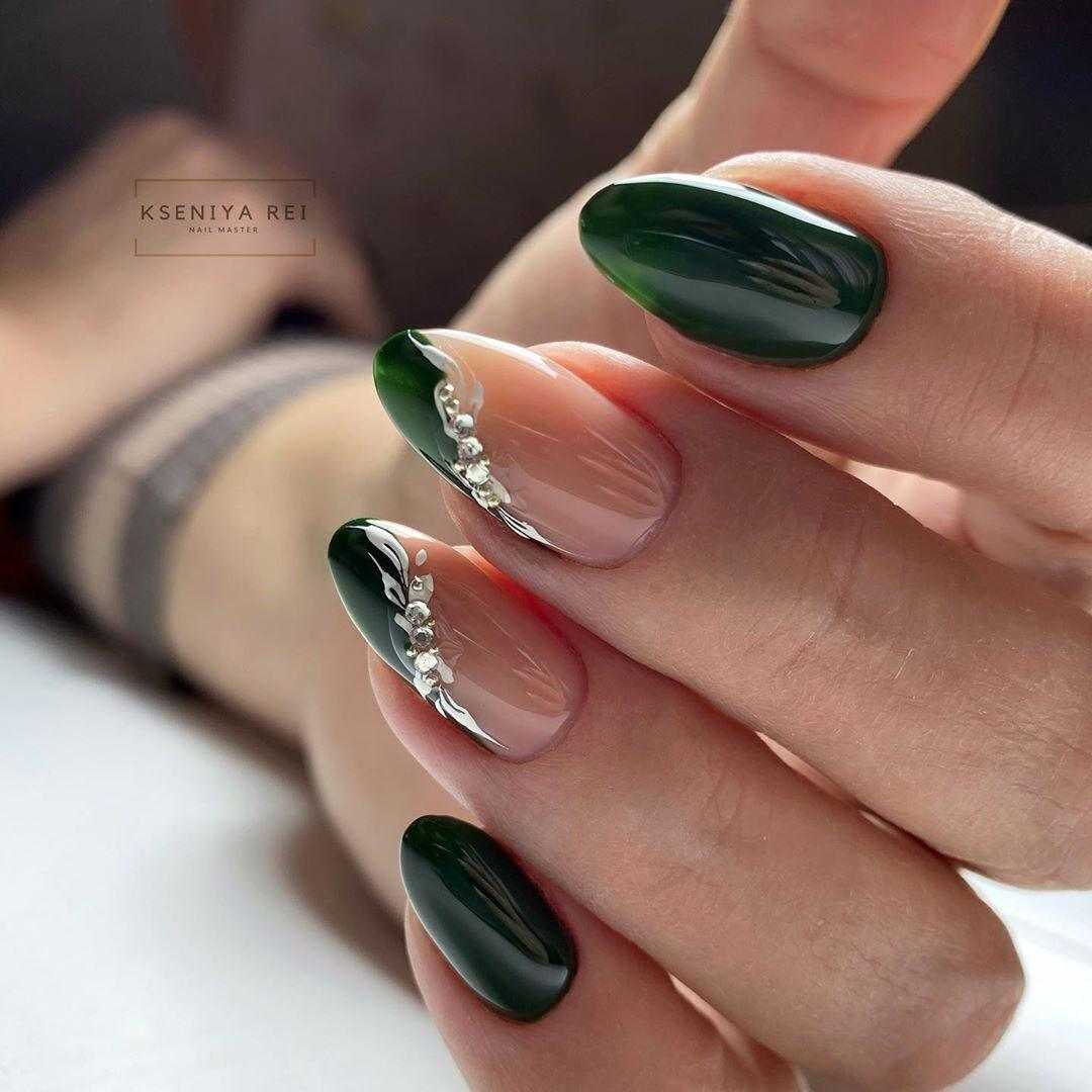 Среди актуальных предложений можно выделить однотонное глянцевое либо матовое покрытие с аккуратными узорами из мелких кристаллов, комбинированный дизайн со стразами и «икрой» в тон основному покрытию на безымянном пальчике, а также сочетание однотонного маникюра с френчем, нейл-дизайн с втиркой и «пенный» маникюр, в которых украшения только подчеркнуть изысканность выбранной техники.