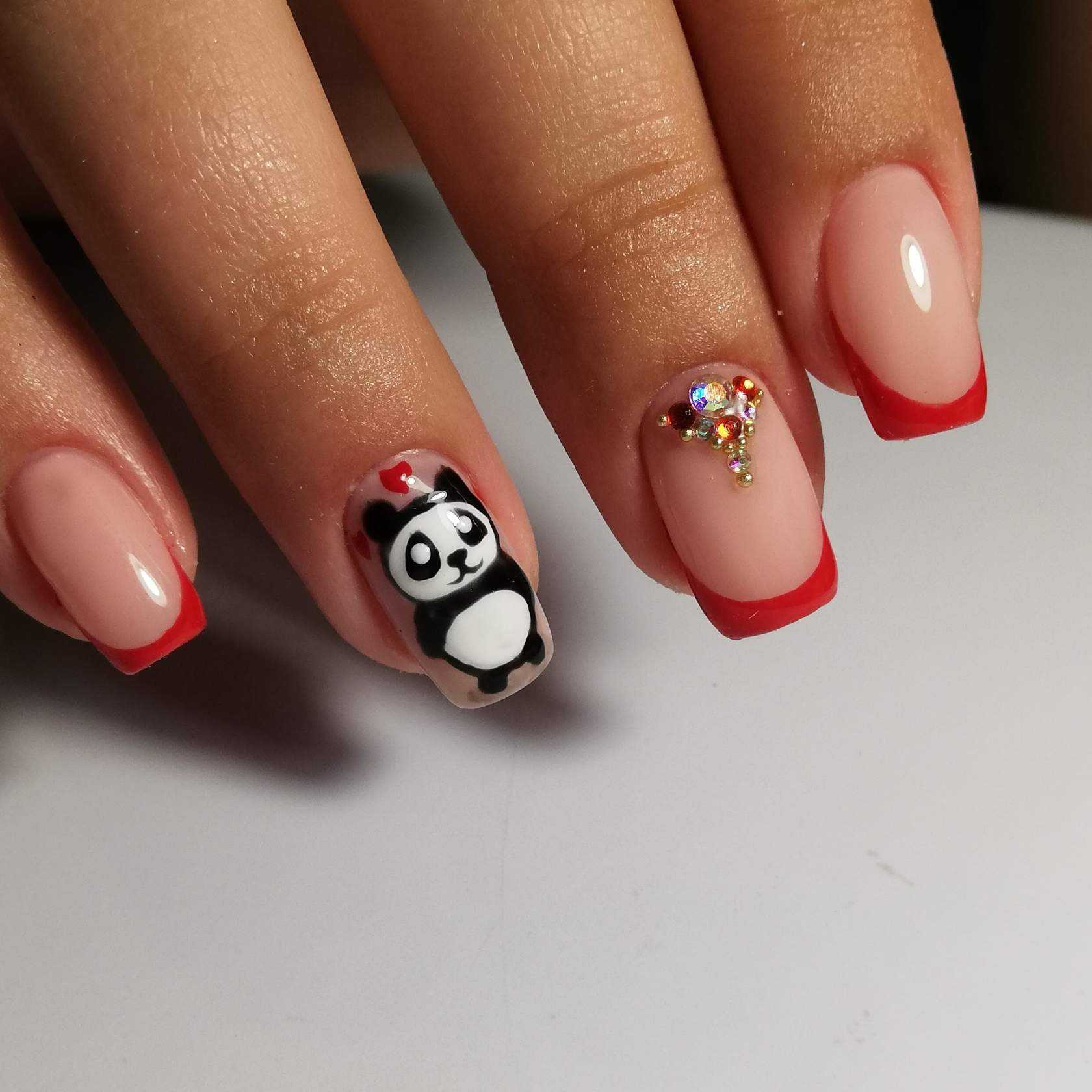 Красный маникюр с дизайном со стразами