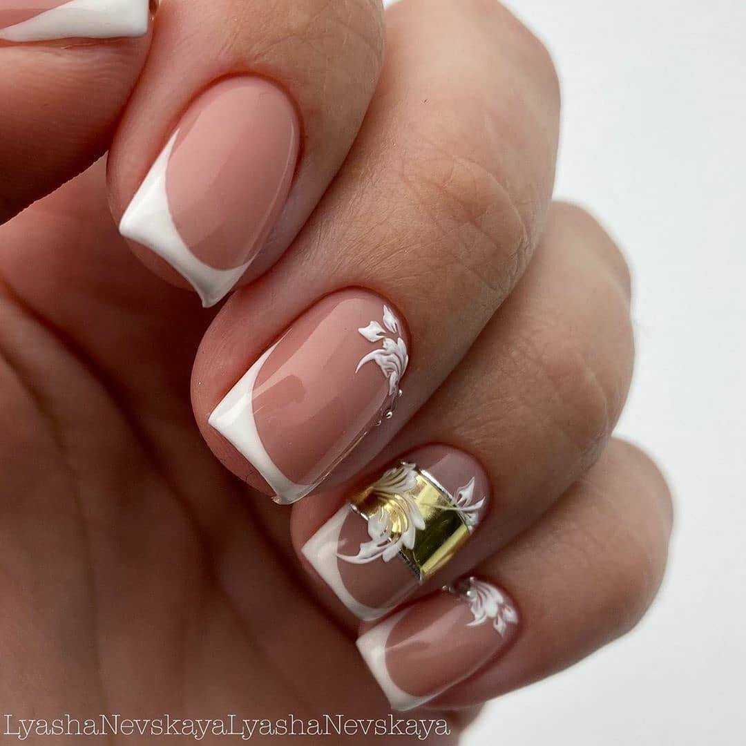 Безусловно, длина ногтей имеет огромное значение в процессе создания маникюра. Многие девушки до сих пор считают, что реализовать интересный дизайн можно только на длинных ногтях. На самом деле это вовсе не так, поскольку главное – адаптировать идею под свой маникюр. Опытный мастер всегда сделает линию улыбки оптимальной ширины. Кроме того, для оформления можно использовать не только классический белый цвет, но и молочный, бежевый или светло-розовый тон. Они выглядят чуть более мягко, поэтому на коротких ноготках смотрятся значительно лучше.