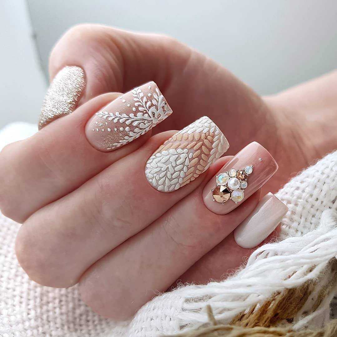 Дизайн маникюра невесты не должен выглядеть стилистически перегруженно. На свадебном дизайне ногтей можно пробовать воплощать любые варианты, наносить самые разнообразные рисунки, декорировать стразами и блестками.