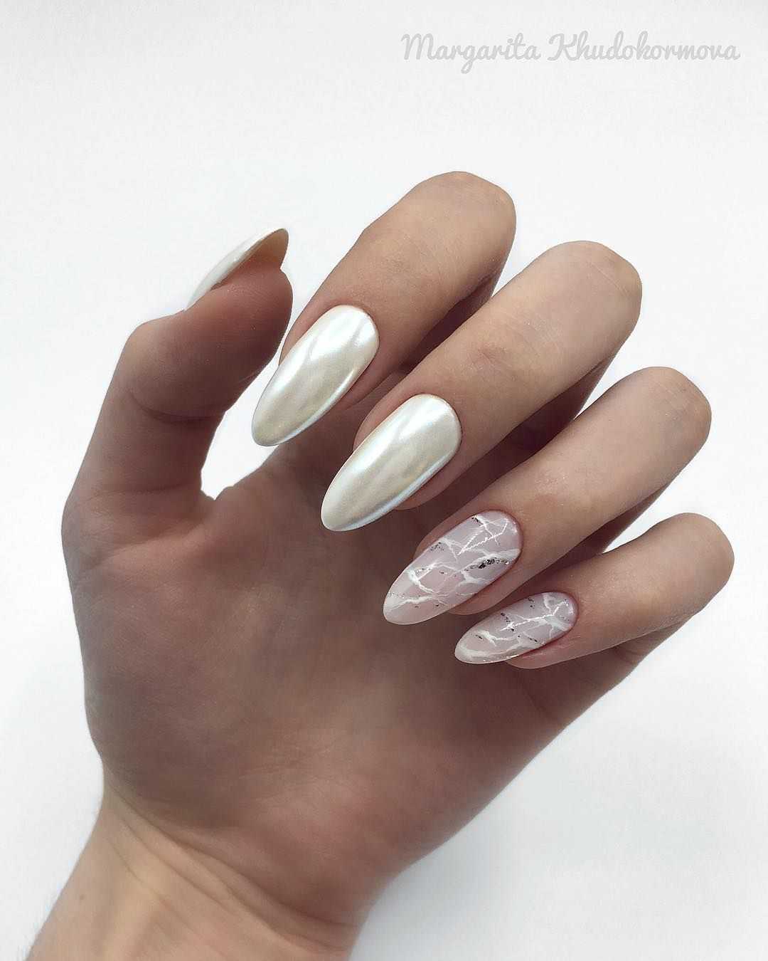 Нежные блестящие переливы на ногтях покоряют всех модниц — делают весь образ эффектным. Дизайн может быть абсолютно разным.