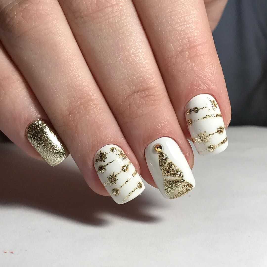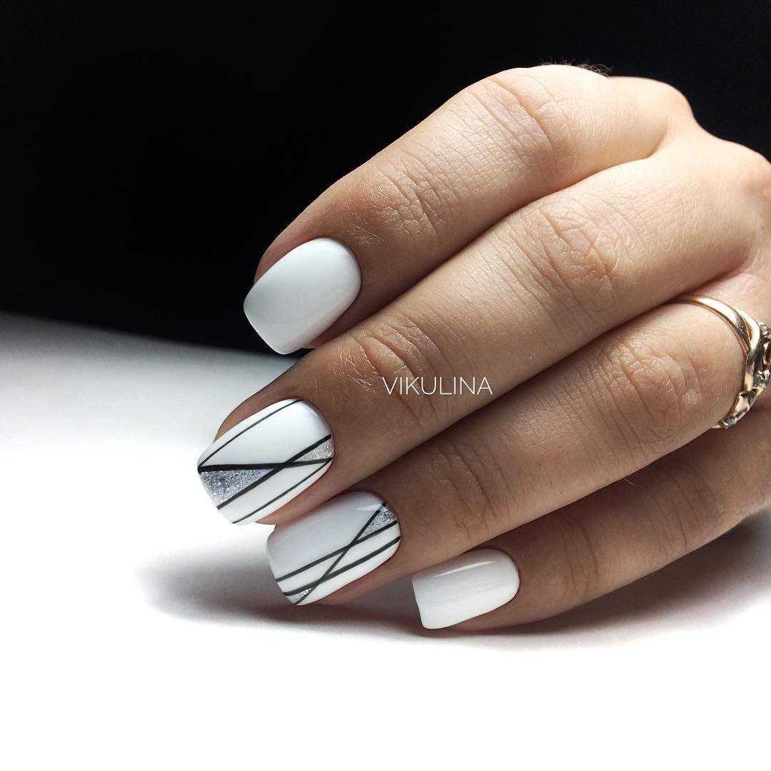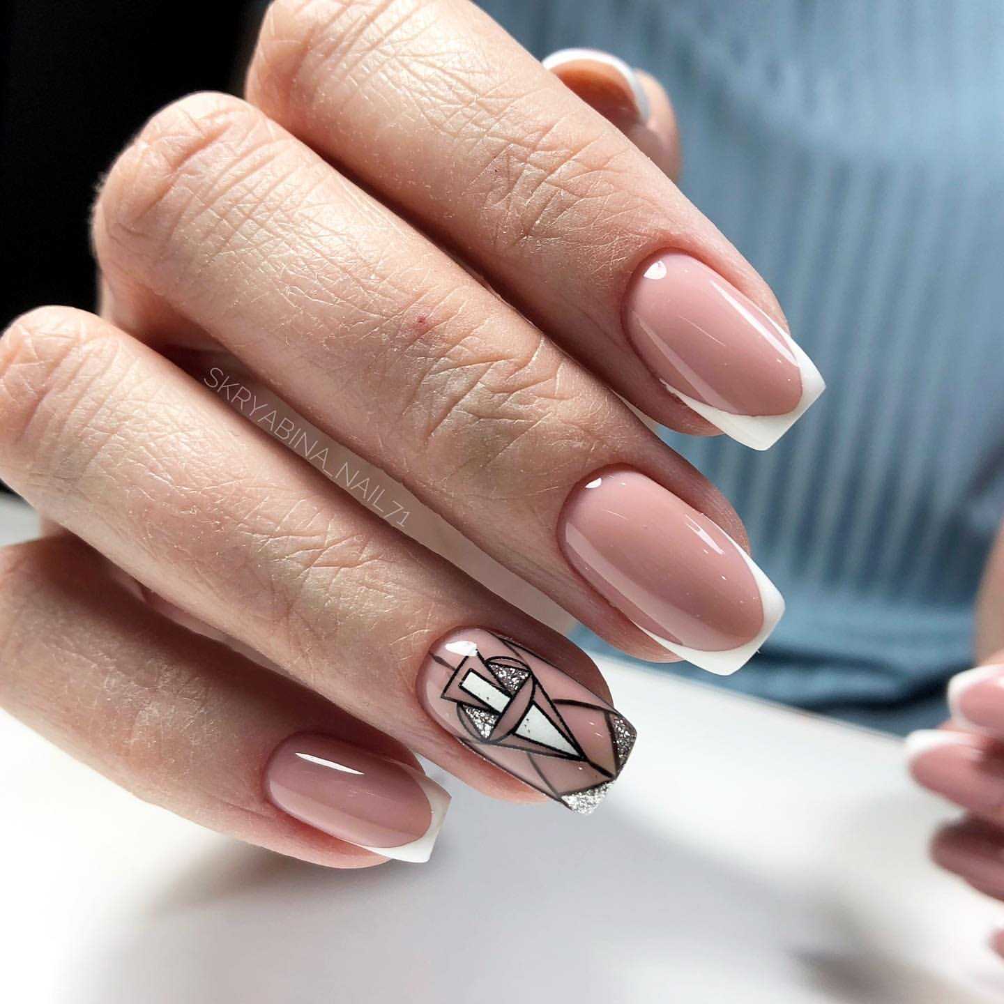 В 2020 году стоит присмотреться к геометрическому дизайну. Тонкие линии, фигуры и точки – все это можно использовать для создания бесчисленного количества рисунков на любой вкус. К тому же, многое зависит от техники нанесения. В домашних условиях использовать кисти не всегда удобно. Выбирайте стемпинг для симметричности. С помощью блесток можно подчеркнуть одну-две линии, что сделает дизайн чуть более ярким.