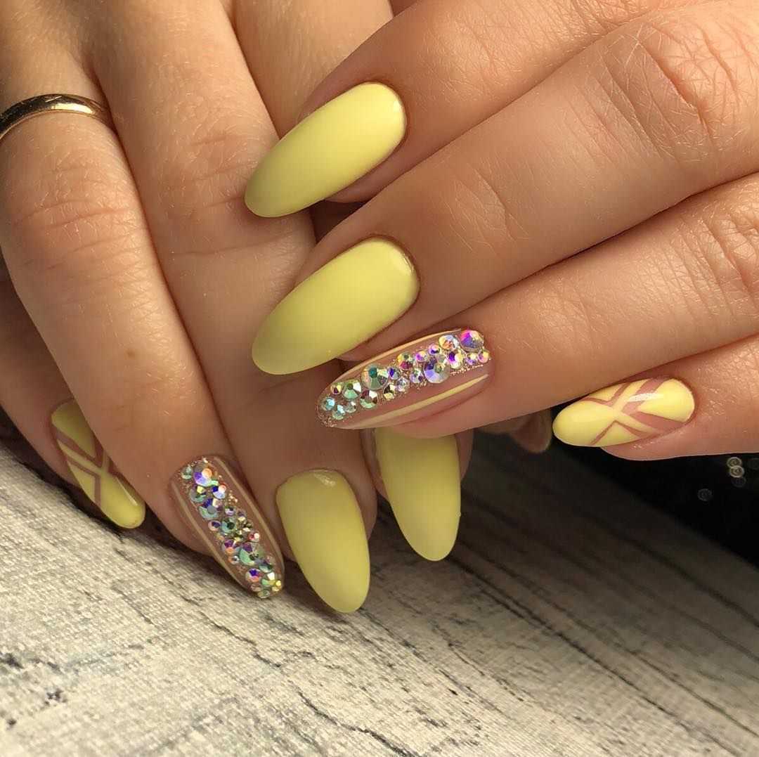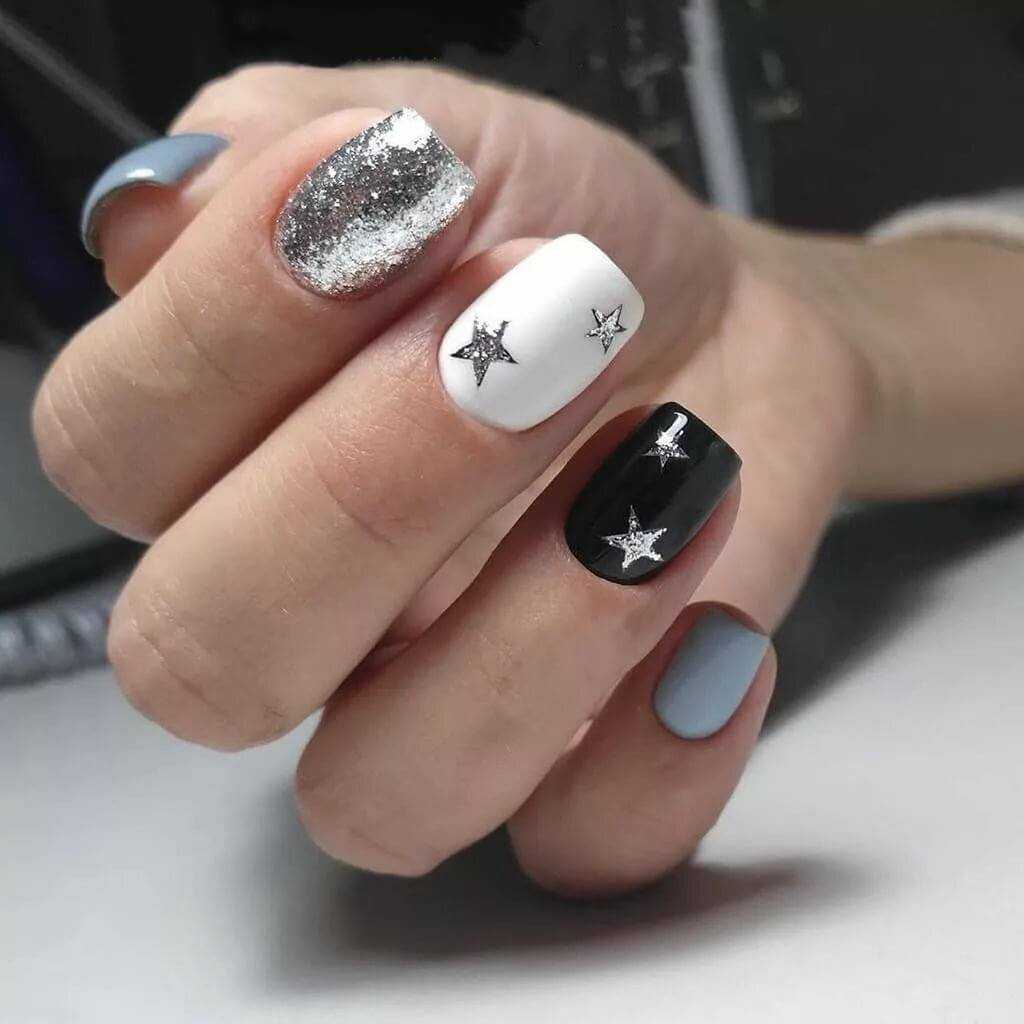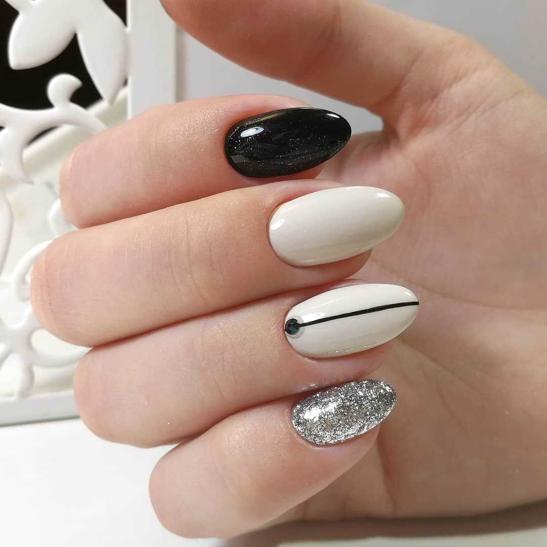 В 2020 году стоит присмотреться к геометрическому дизайну. Тонкие линии, фигуры и точки – все это можно использовать для создания бесчисленного количества рисунков на любой вкус. К тому же, многое зависит от техники нанесения. В домашних условиях использовать кисти не всегда удобно. Выбирайте стемпинг для симметричности. С помощью блесток можно подчеркнуть одну-две линии, что сделает дизайн чуть более ярким.
