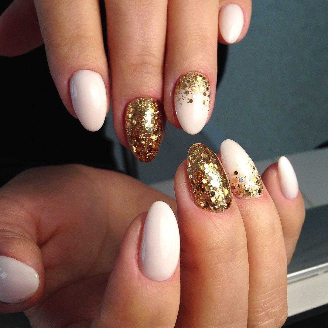 Золотые блестки хорошо сочетаются со всеми цветами и являются самым беспроигрышным вариантом.