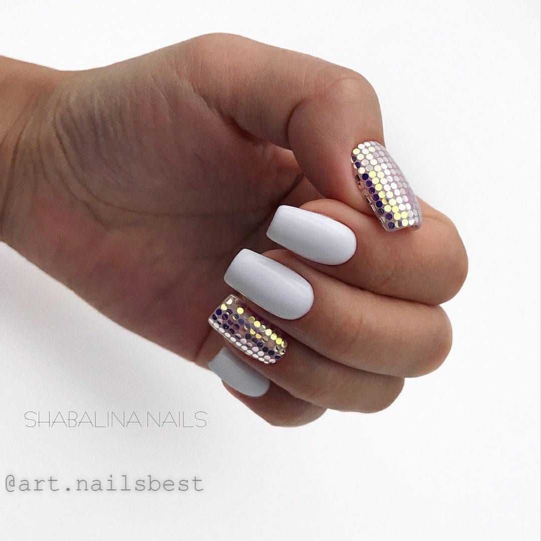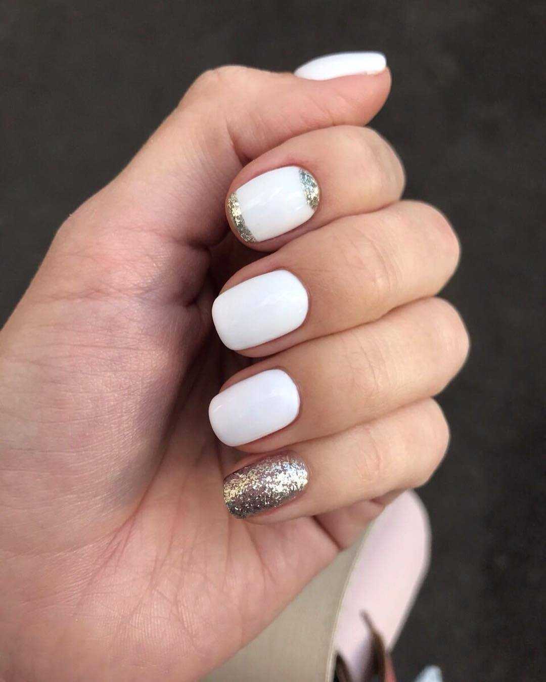 Белый маникюр с блестками – это отличный способ выделиться среди остальных. Данный маникюр прекрасно подходит для любых событий и наполнит образ девушки нежностью, эффектностью и изящностью. Такой дизайн можно смело применять в любое время года и даже превращать в тематический маникюр. Просмотрев далее фото, девушкам будет значительно легче выбрать для себя дизайн стильного и модного белого маникюра с блестками.