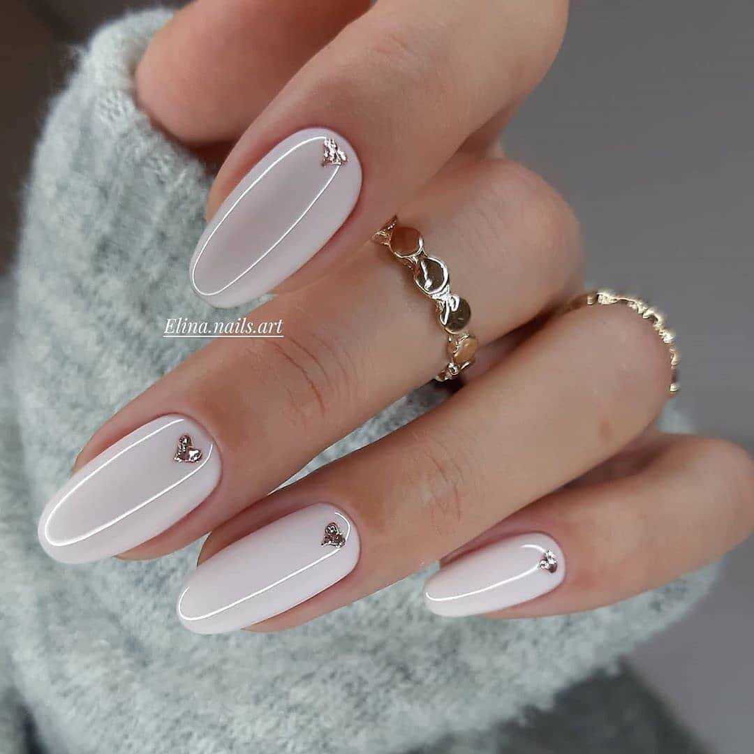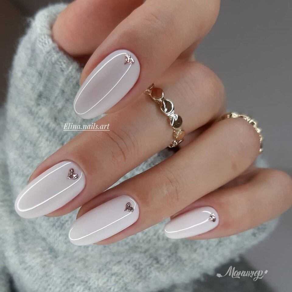 Чтобы соответствовать выбранному стилю, дизайнеры не рекомендуют увлекаться обилием декора. Выделения пары ноготков блестящими лунками или россыпью частиц будет вполне достаточно для уравновешивания всей стилистики оформления. Также можно отметить, что молочная база является прекрасной основой для создания всевозможных рисунков, а достаточная длина позволяет наносить на покрытие целые художественные картины.