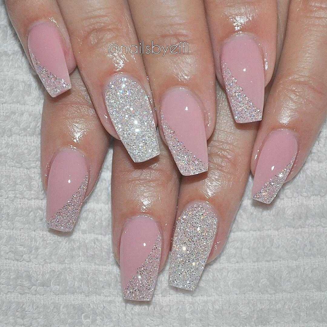 - Многие в восторге от дизайна, когда на нежно-розовую подложку наносят топ с двумя видами блесток. Смешивают разные цвета, мелкие и крупные.