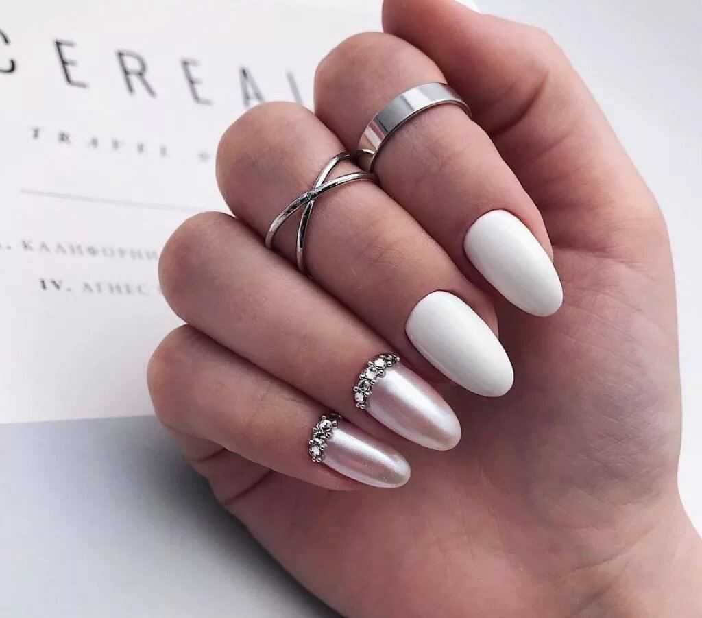 Когда речь заходит о длинных ногтях, то маникюр молочного цвета идеально будет смотреться на любой их форме, будь то овальные, прямоугольные и даже заострённые пластины, ведь как мы уже говорили, подобный нейл-арт является воплощением нежности и притягательности. Такой маникюр, безусловно, подчёркивает длину ногтевых пластин, но при этом совсем не выглядит вульгарно и дополняет весь образ некой сдержанностью.