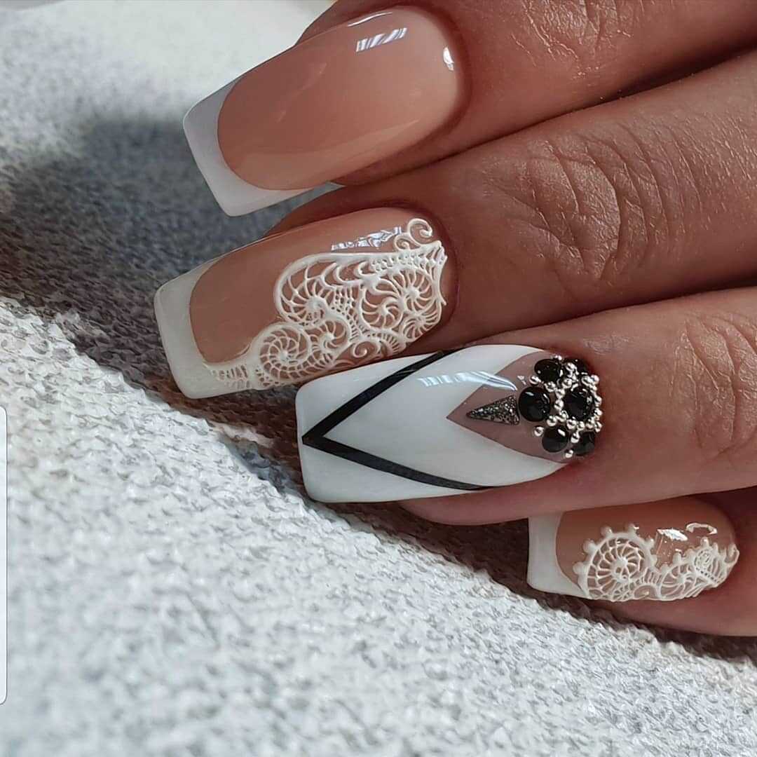Сочетание чёрного и белого лака в геометрическом дизайне 2021