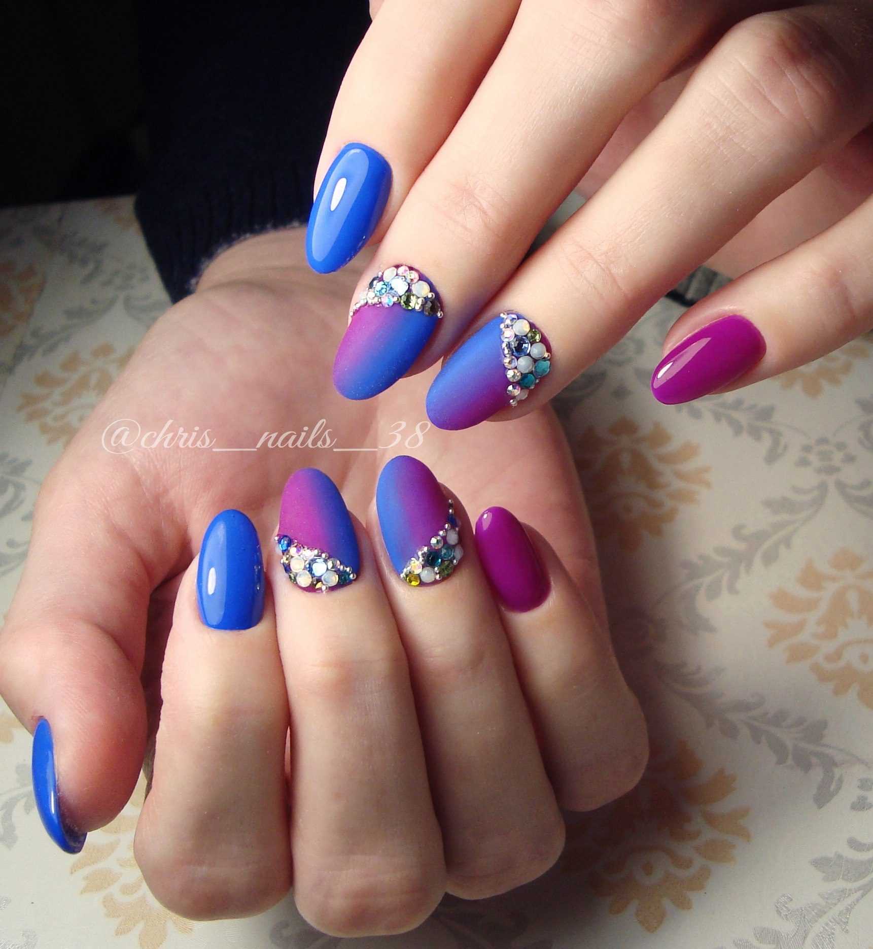 Такой маникюр можно завершить узорами либо декором. Изящно смотрится омбре с матовой поверхностью. Градиент подходит для любой длины ногтей.