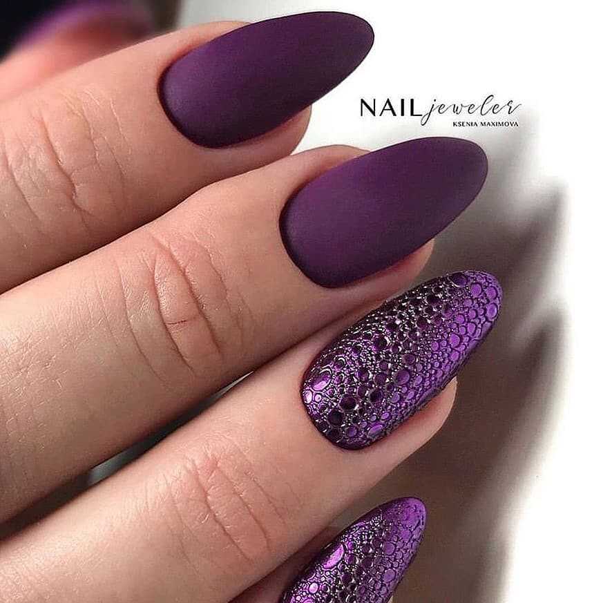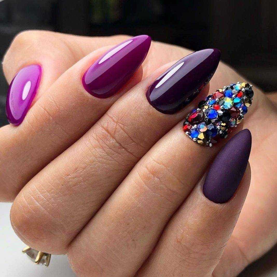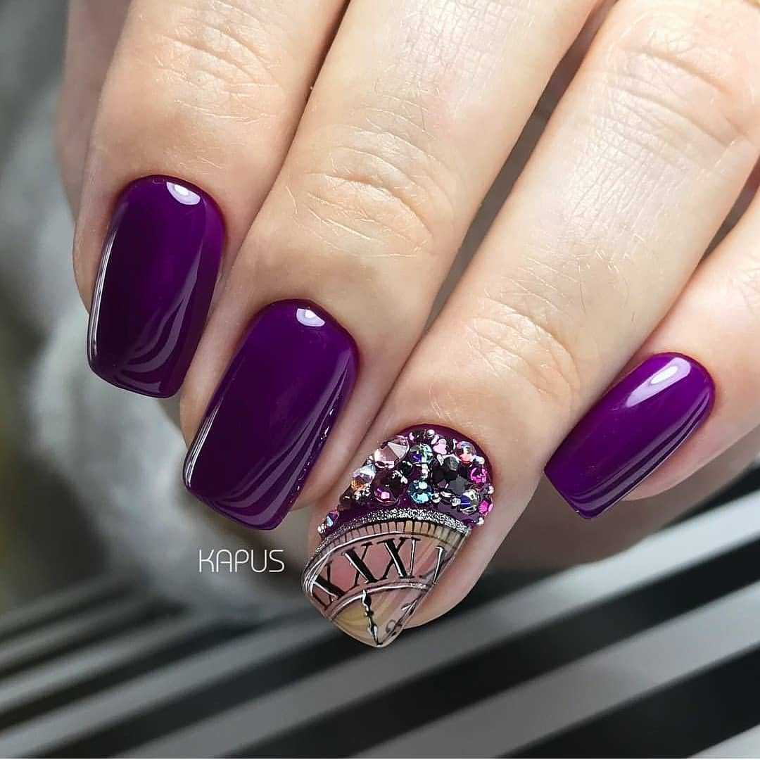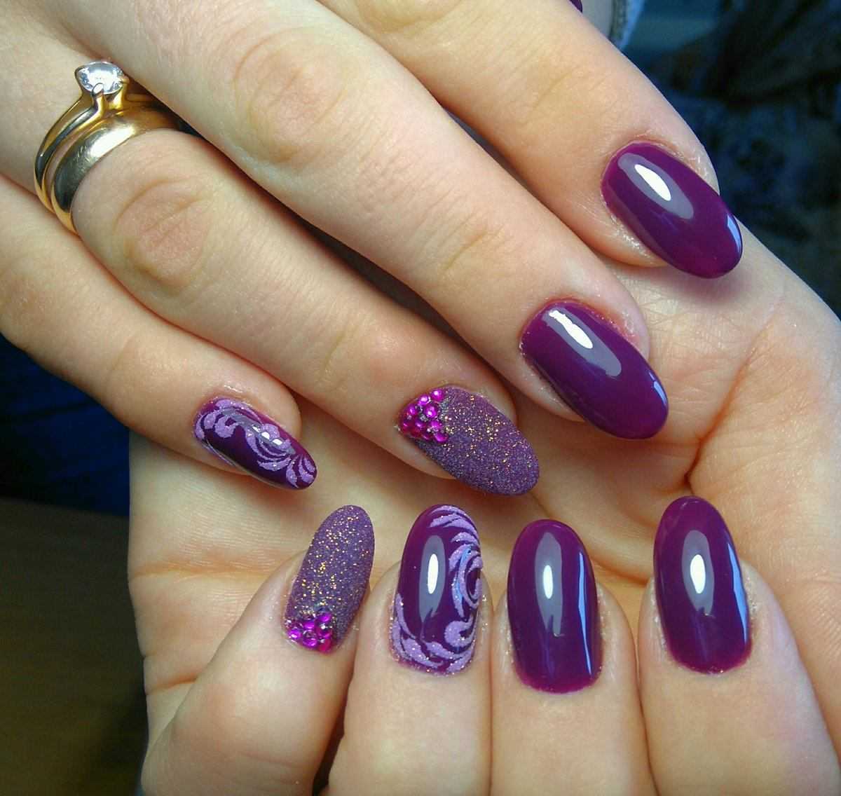 Сливовый маникюр подойдет как для офиса, так и для торжественных случаев. В последнем варианте его лучше дополнить ярким дизайном.