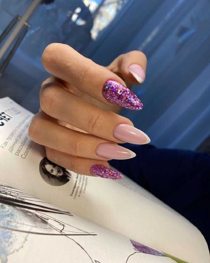 Форма миндаль считается одной из самых популярных в последние годы. На ноготках миндальной формы розовые оттенки гель-лаков смотрятся мило и нежно. Такой маникюр добавляет романтичности в образ девушки. Даже длинные острые ногти будут выглядеть не так вульгарно, если они будут покрыты розовым гель лаком, а миндальные ногти с нежно-лиловым покрытием будут смотреться очень деликатно и женственно.