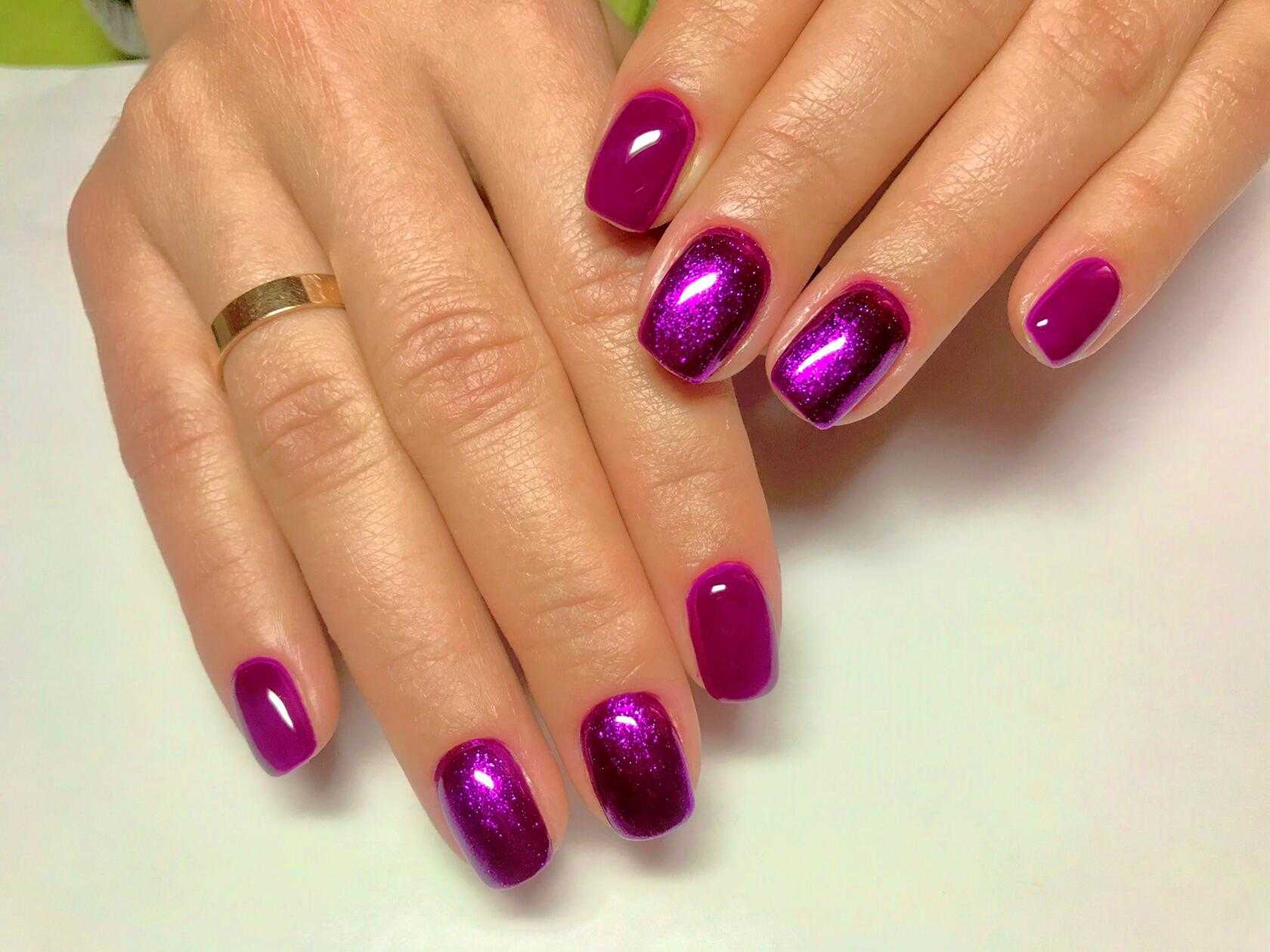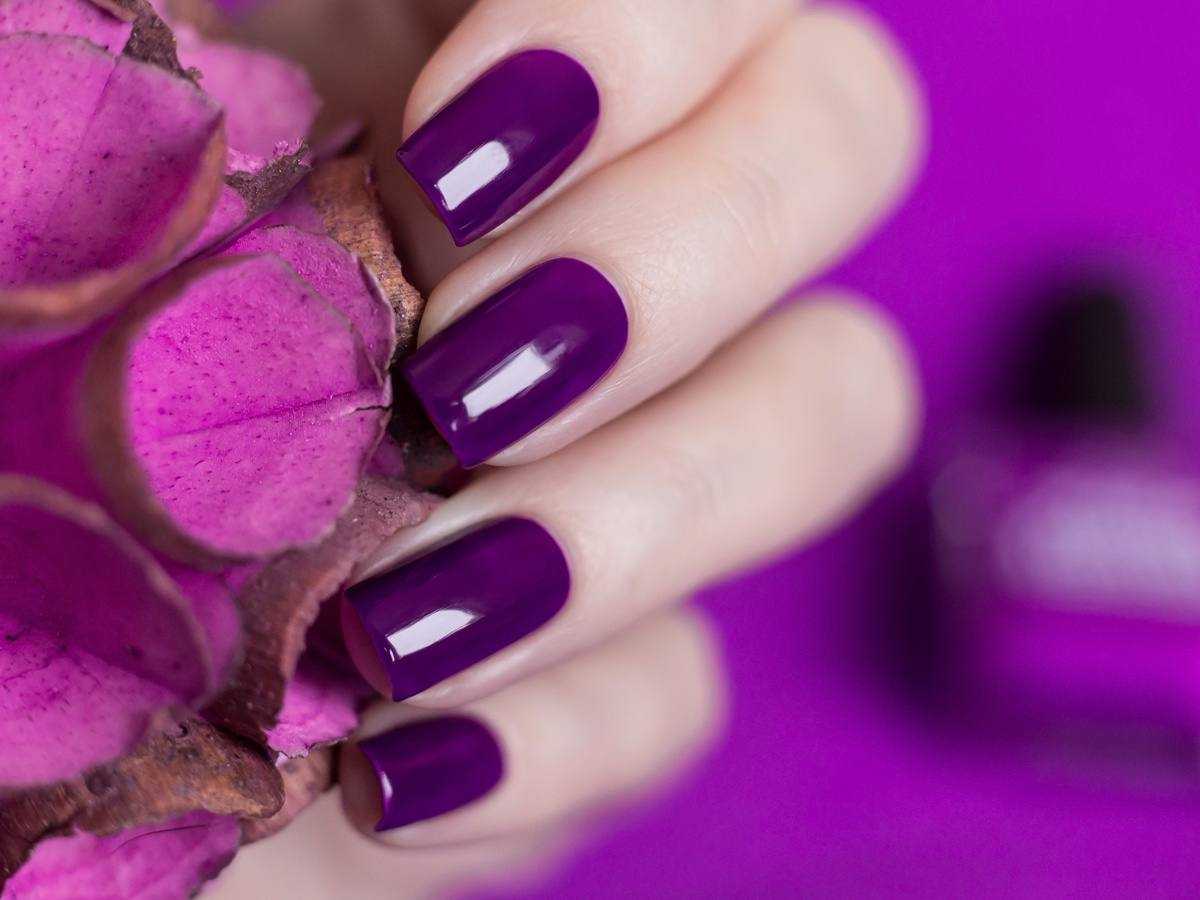 Обратите внимание на сливовый или виноградный гель-лак. Однотонный глянцевый маникюр в таком исполнении выглядит вкусно и стильно