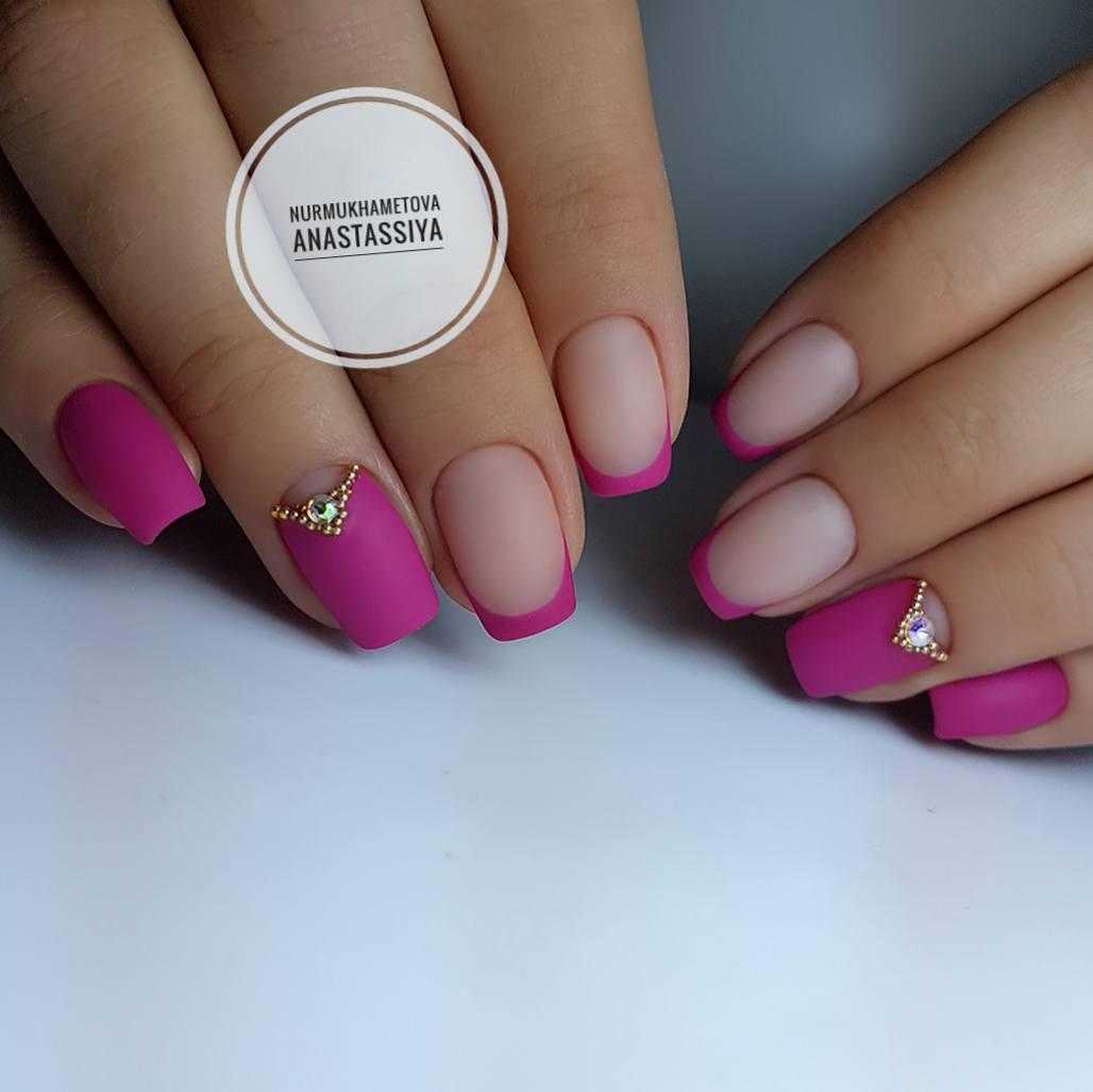 В списке новомодных идей выделение матовым топом нескольких ногтевых пластин, что позволяет создать гармоничный контраст покрытий. Если же вы решили оформить каждую ногтевую пластину бархатистым слоем, то дополнительно необходимо использовать украшения на паре ноготков, к примеру, металлизированные полоски, россыпь кристаллов, узоры гелем-паутинкой, выделение блёстками области лунулы у основания ногтевой пластины, композиции из страз или бусин.
