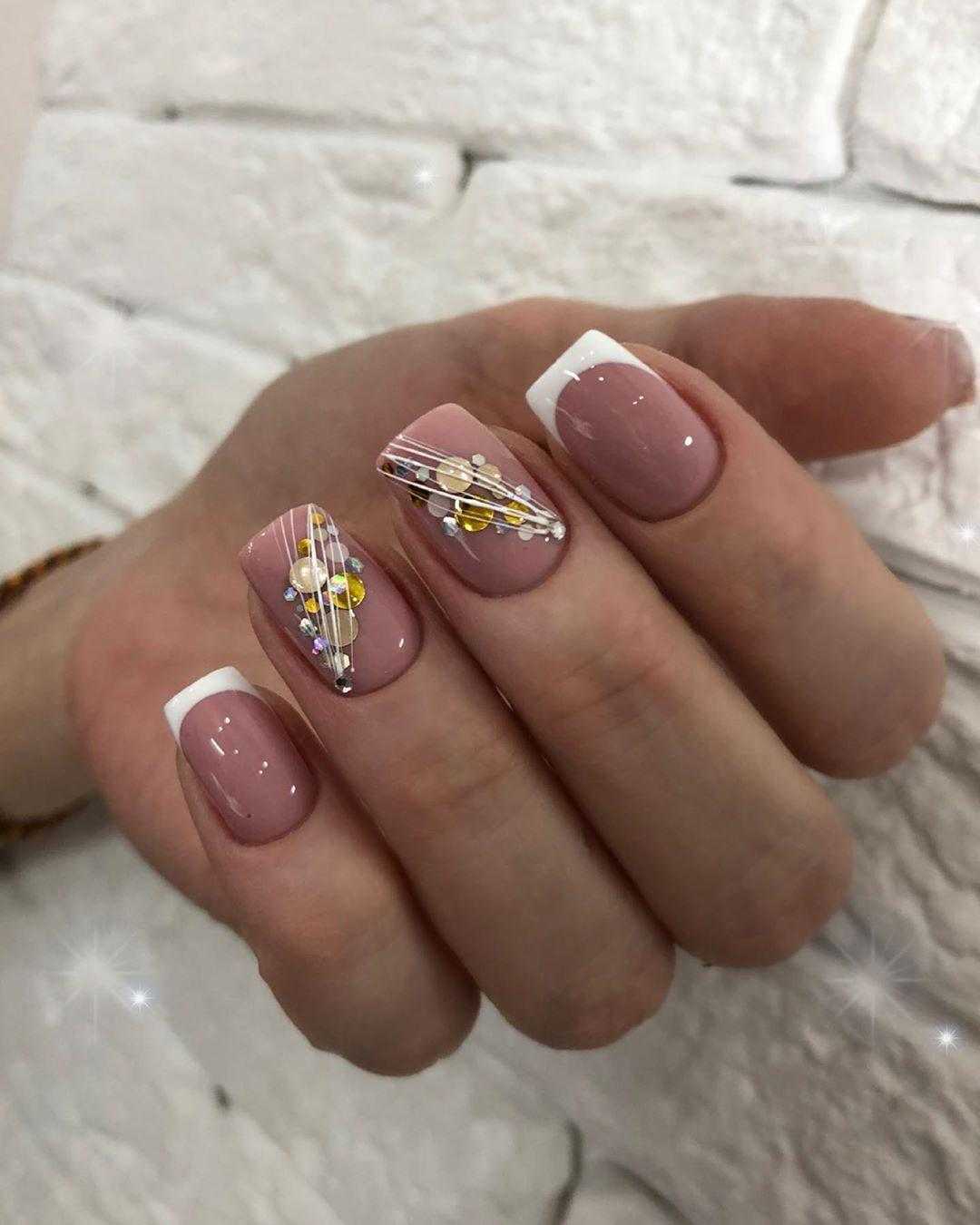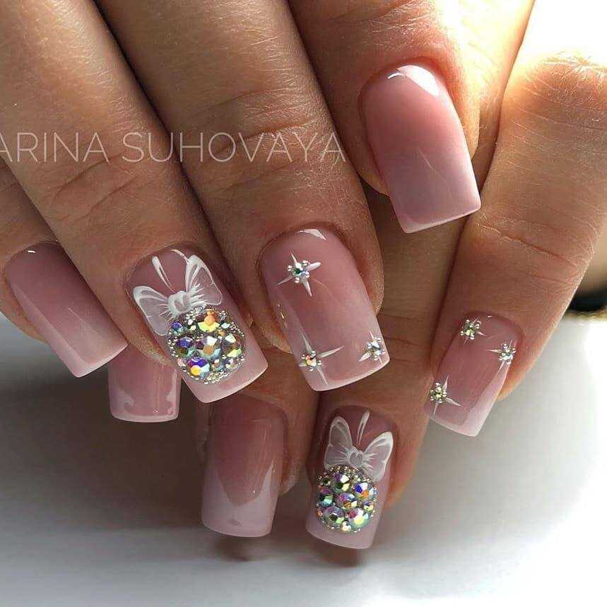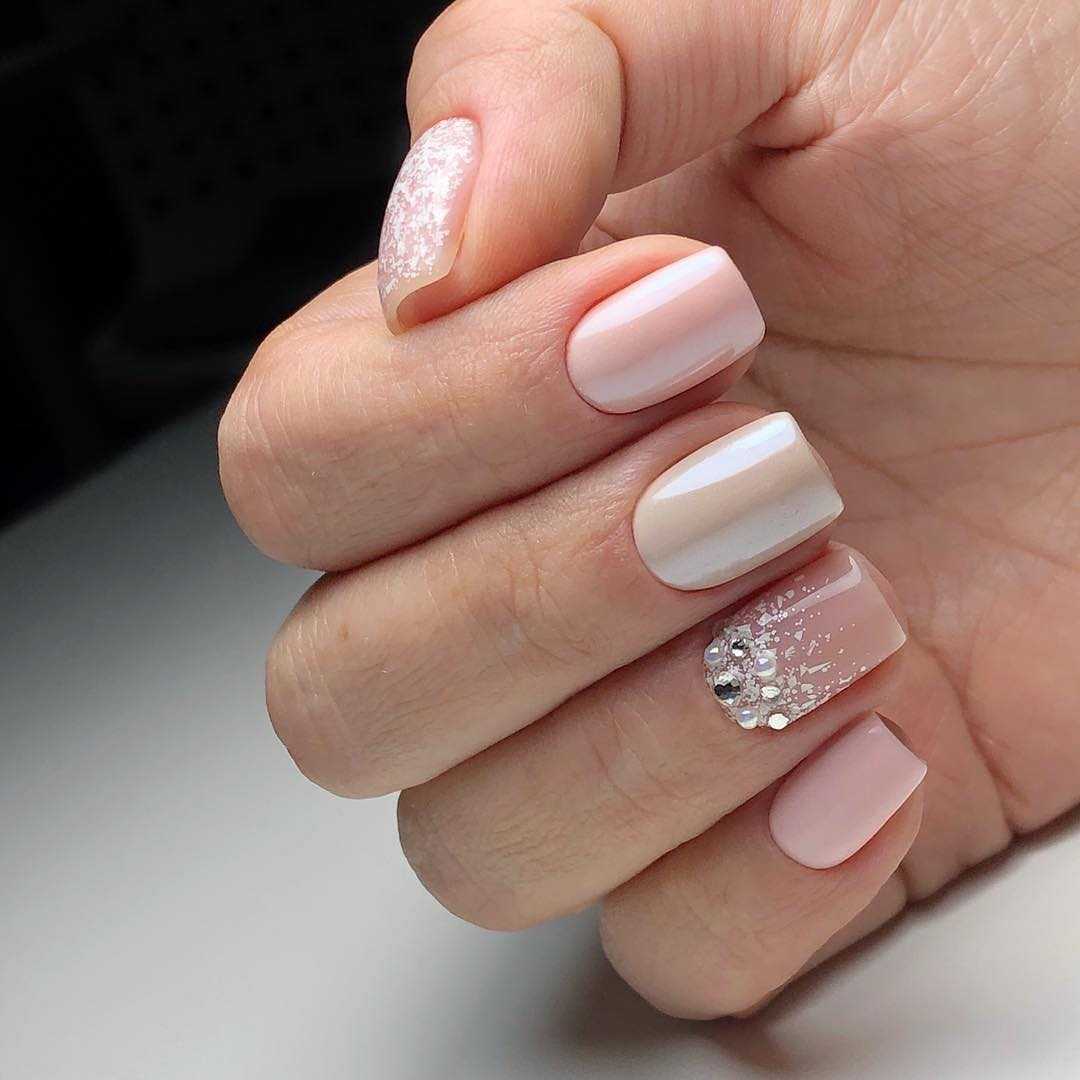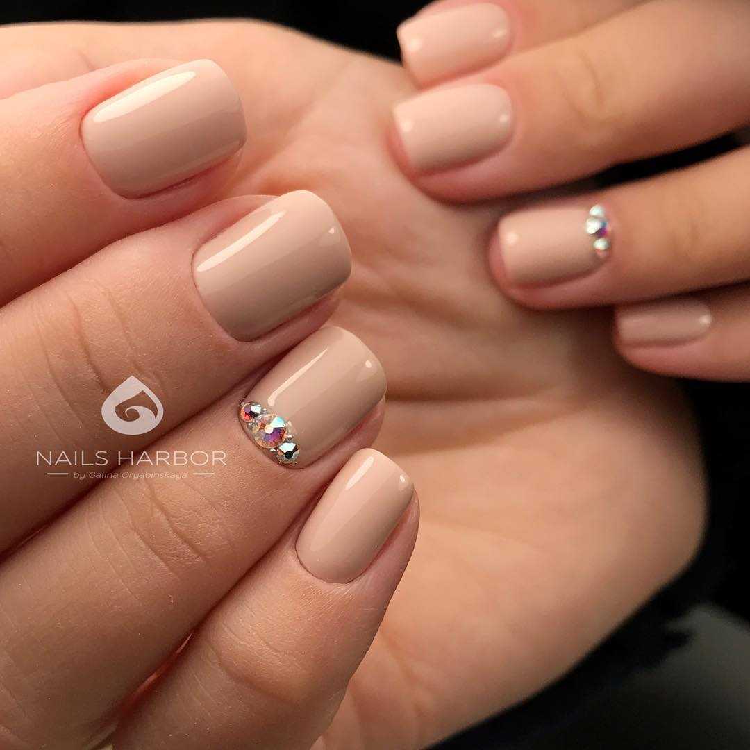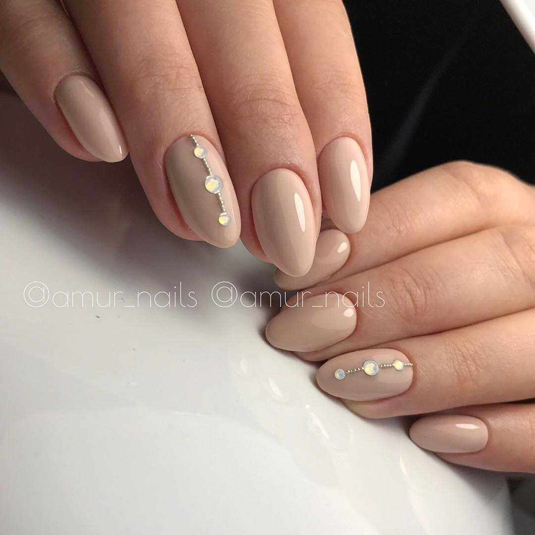 Для ногтей бледных оттенков можно добавить украшения в виде стразов, цветочных узоров, линий, посыпки или перламутра. Красивые однотонные оттенки, совпадающие с цветом кожи максимально зрительно удлиняют пальцы.