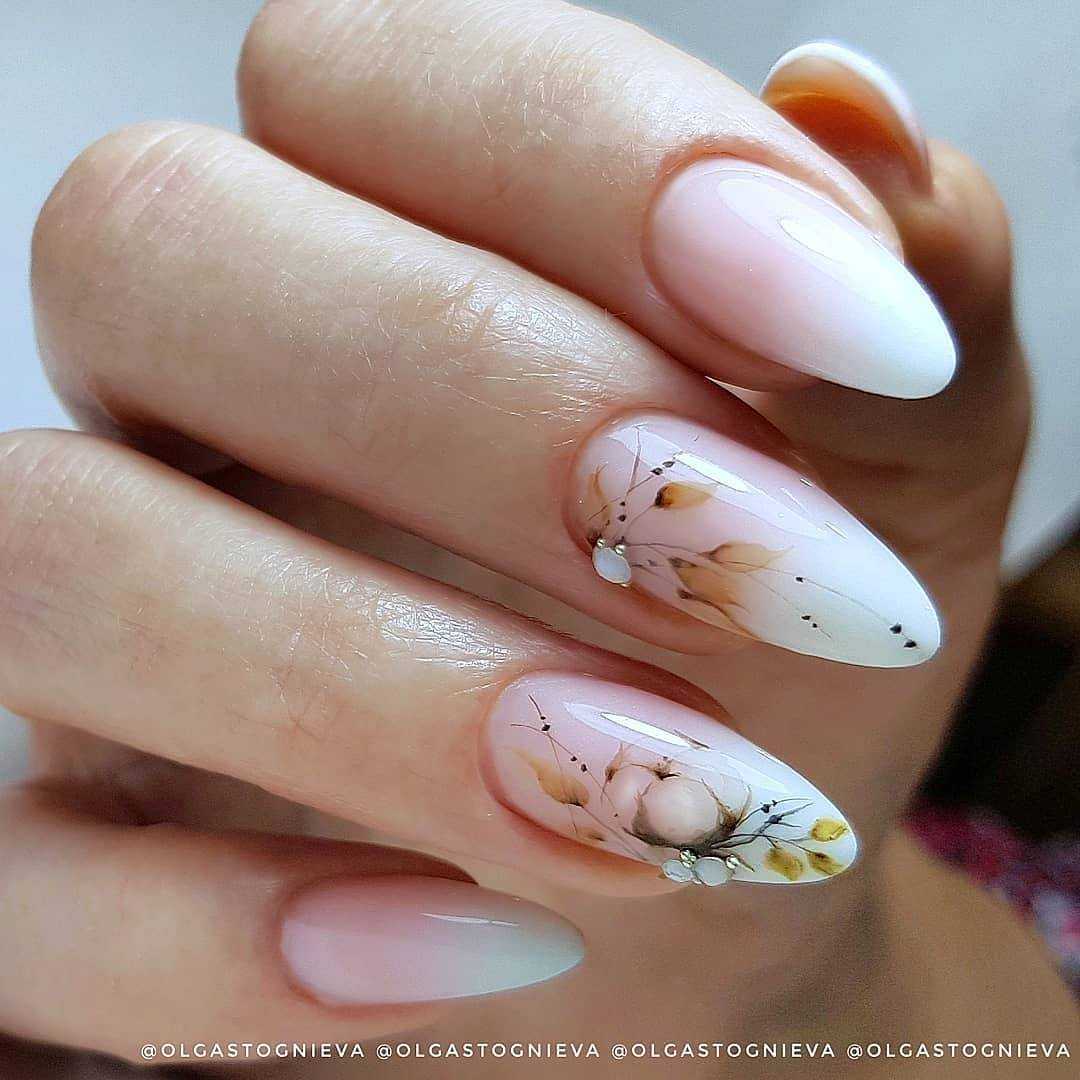 Нежный маникюр на миндалевидные ногти в пастельных тонах