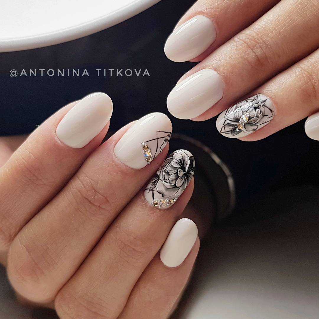 Среди романтичных натур популярны рисунки цветов, сердечек и бабочек. Лучше всего такие рисунки смотрятся на белой, молочной или нюдового цвета основе. Очень элегантно и романтично смотрятся рисунки роз, тюльпанов, маков и различных других красивых цветов.