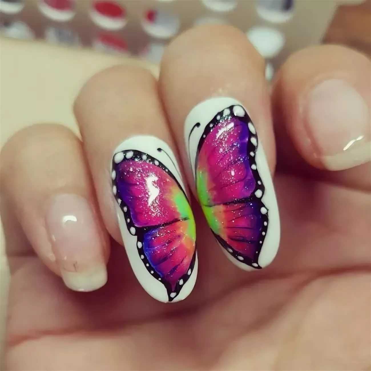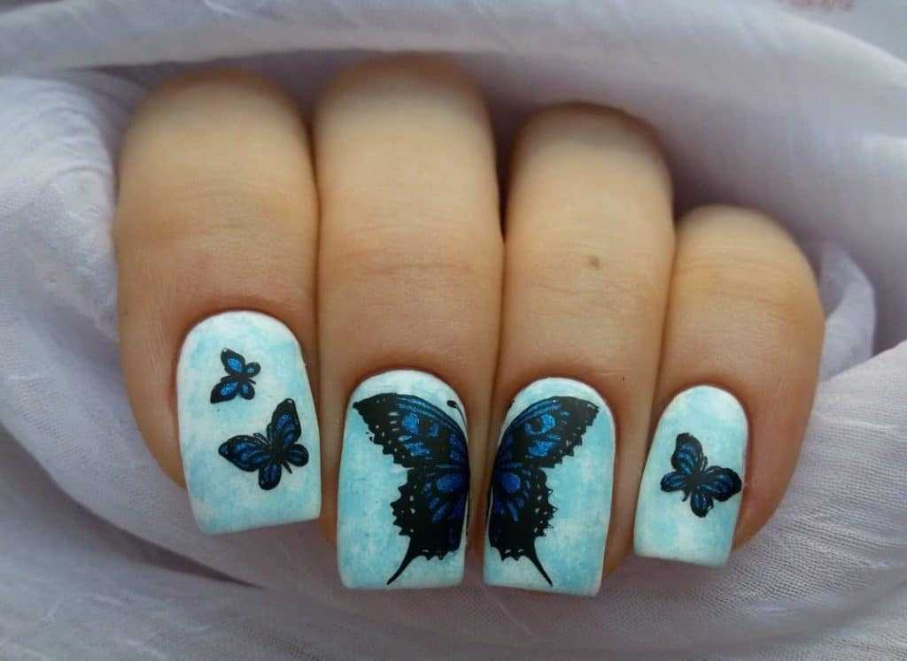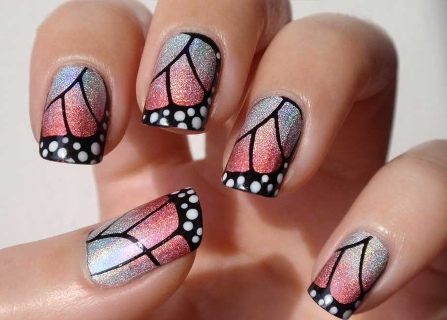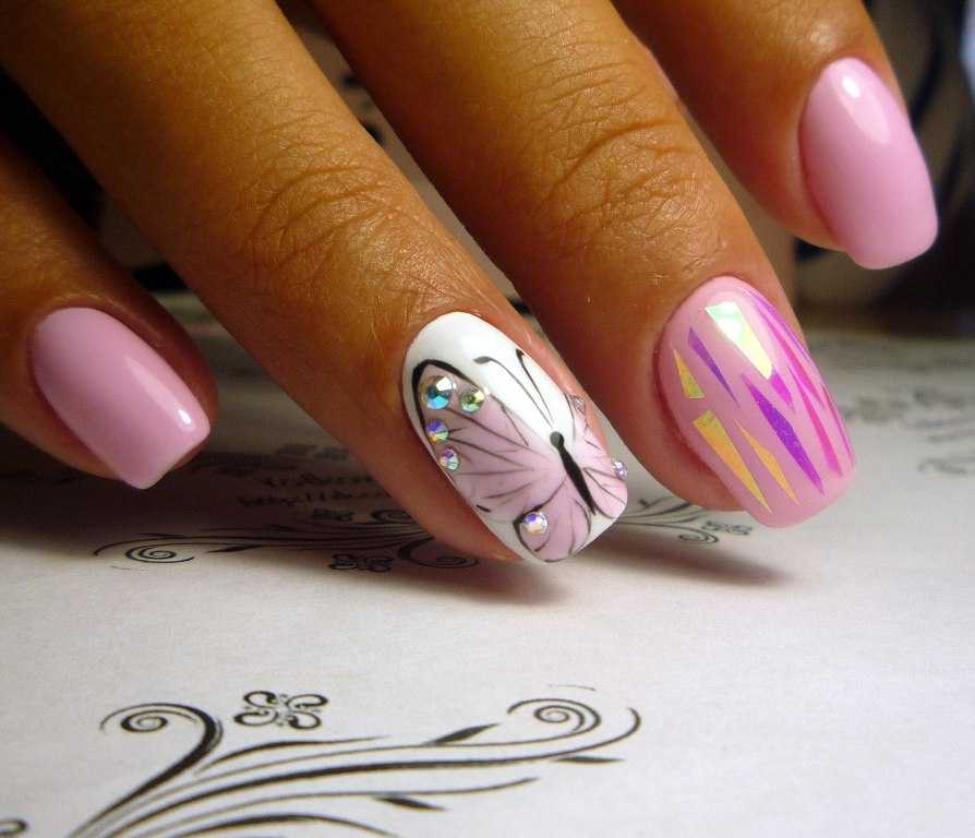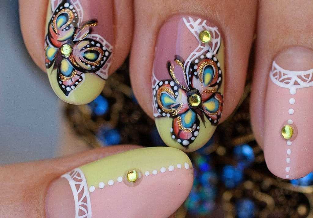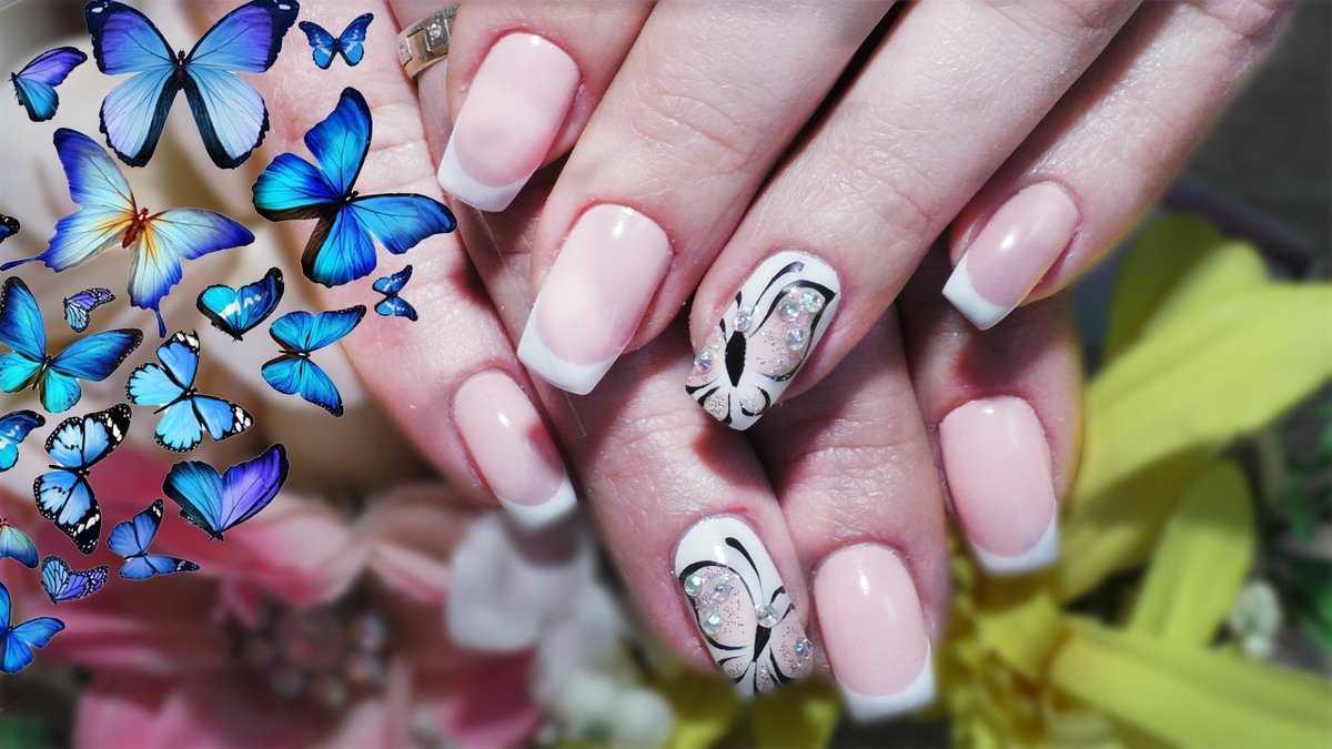 Варианты дизайнерских решений маникюра с изображением бабочек