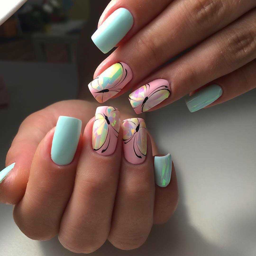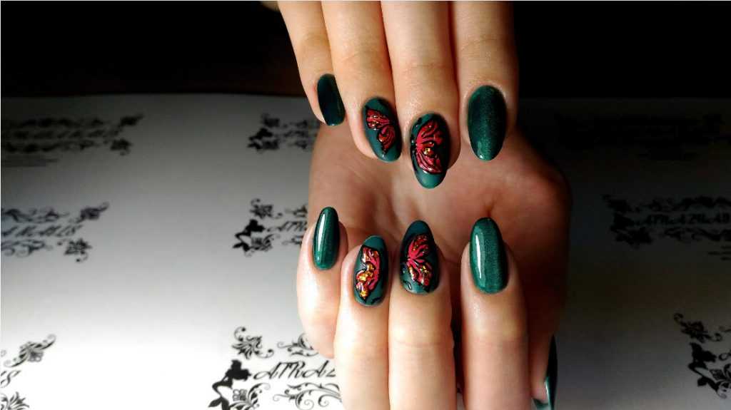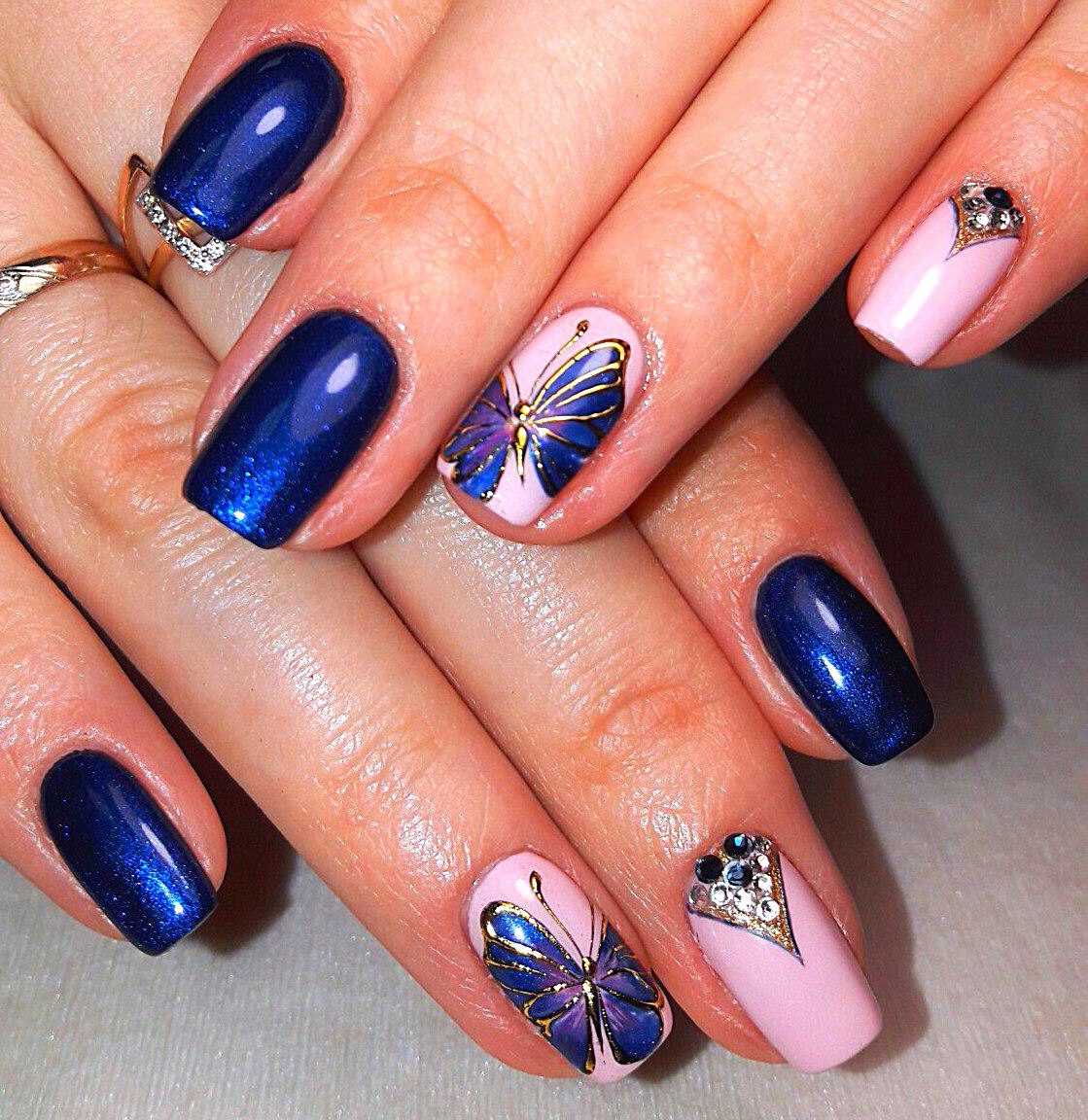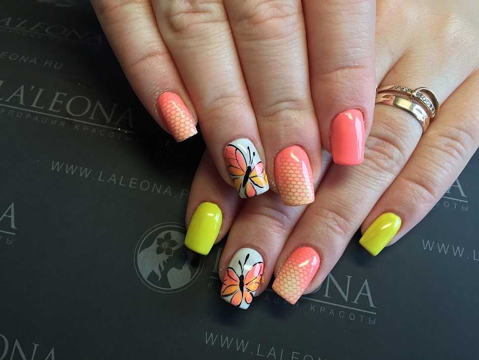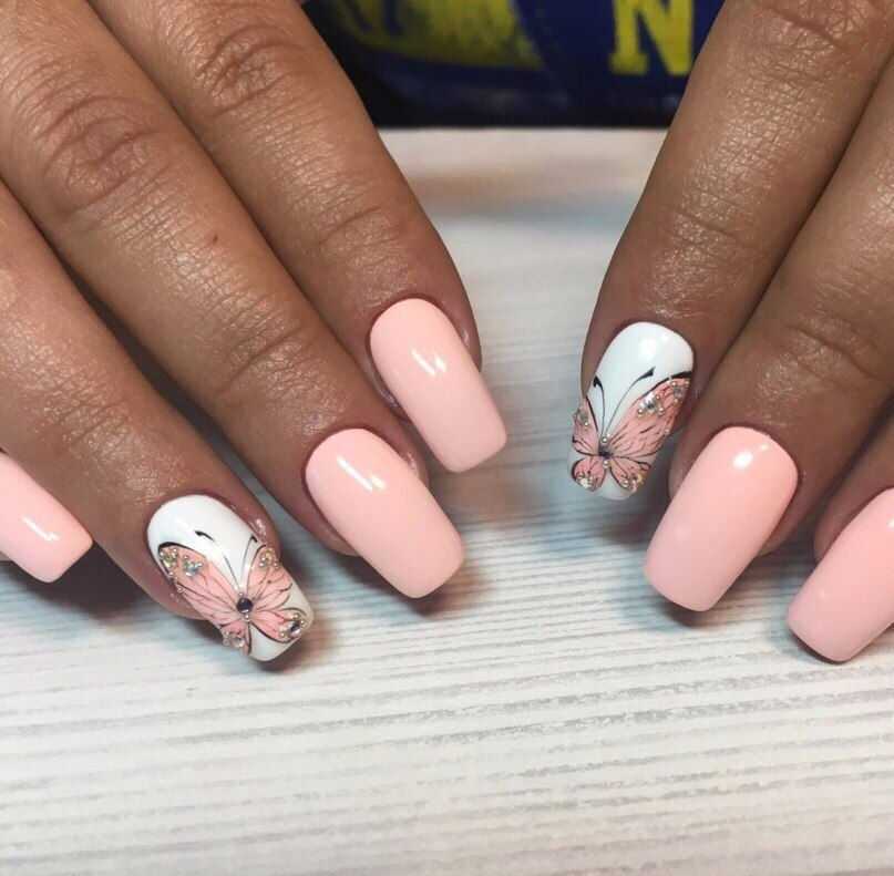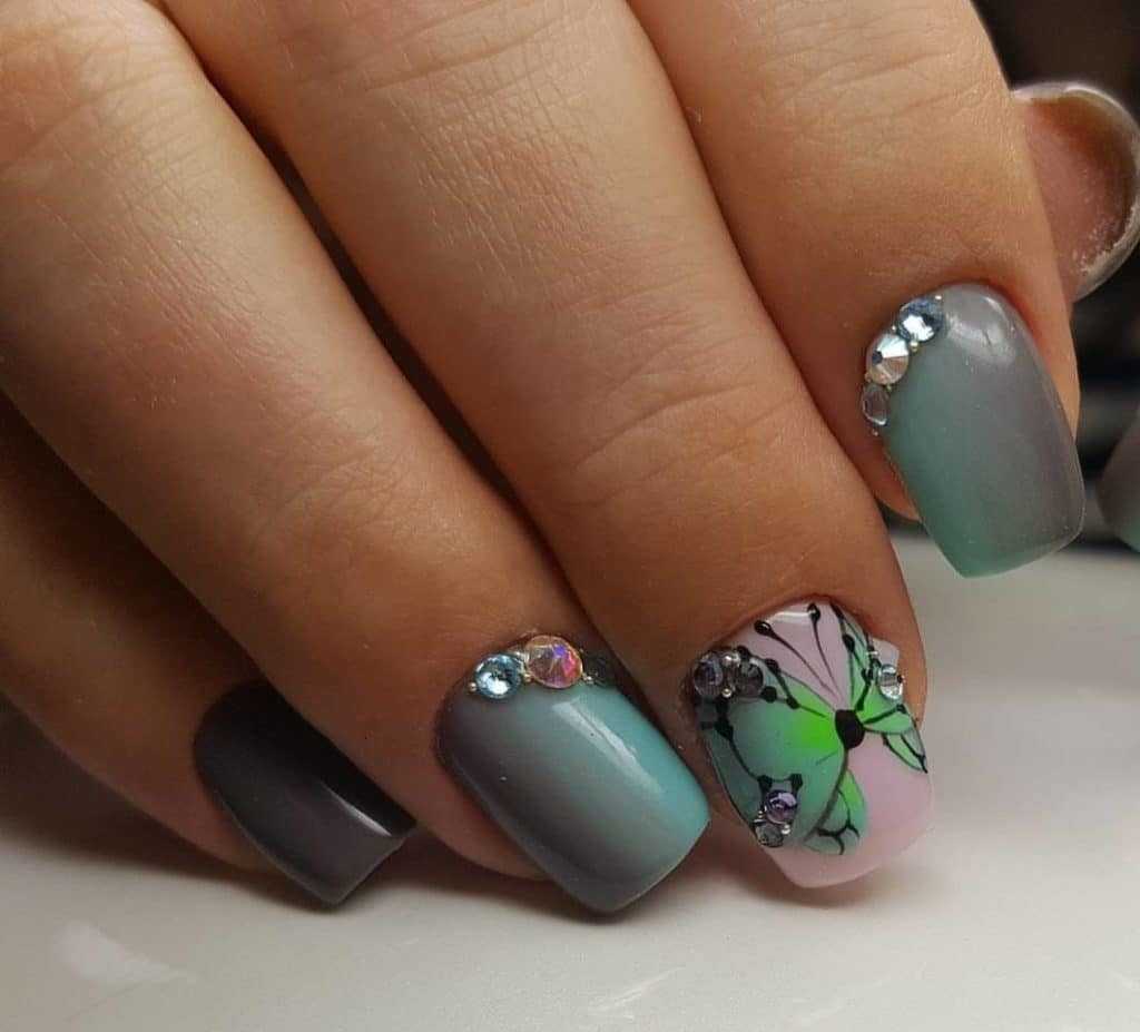 Варианты дизайнерских решений маникюра с изображением бабочек