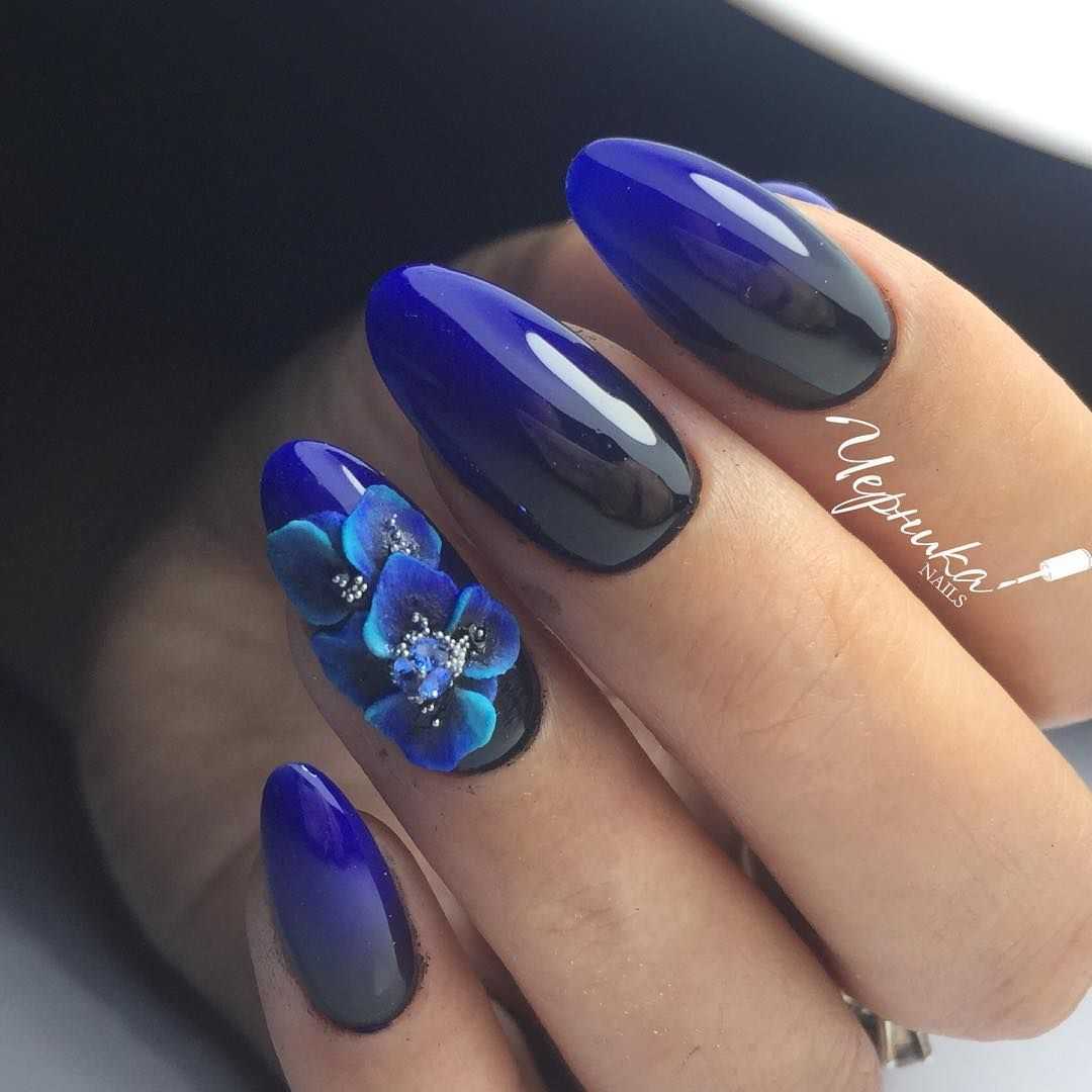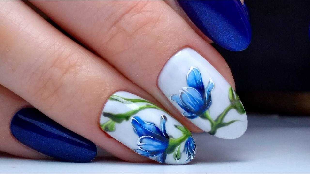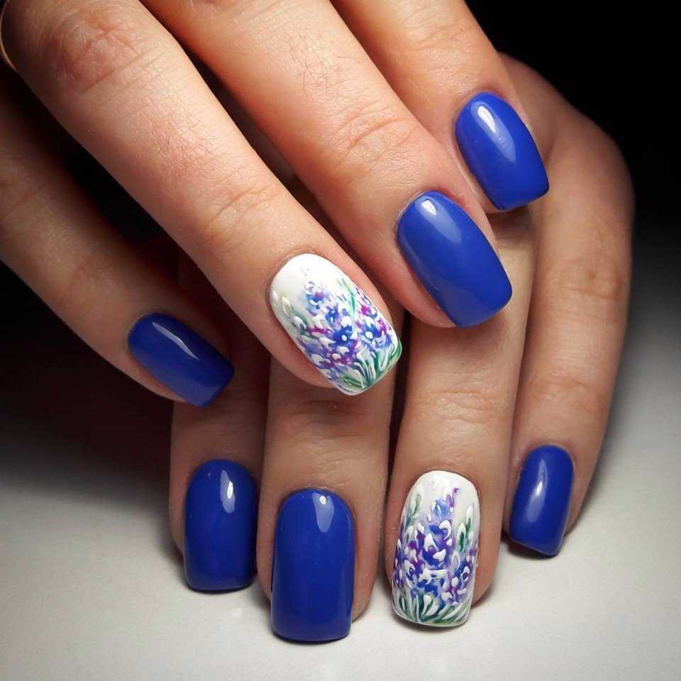 Оригинальный маникюр с непревзойденными синими цветами выглядит очень привлекательно и оригинально. Можете смело выбрать любую из представленных идей и удивлять окружающих своим невероятным и прекрасным нейл-артом.