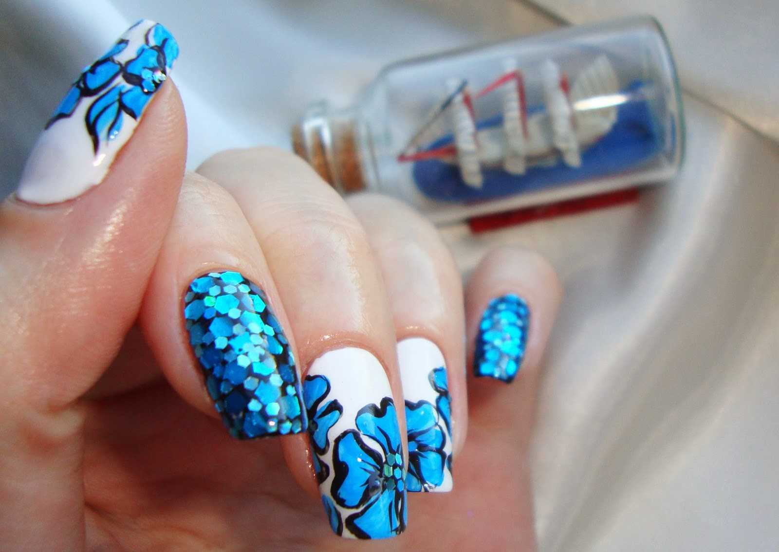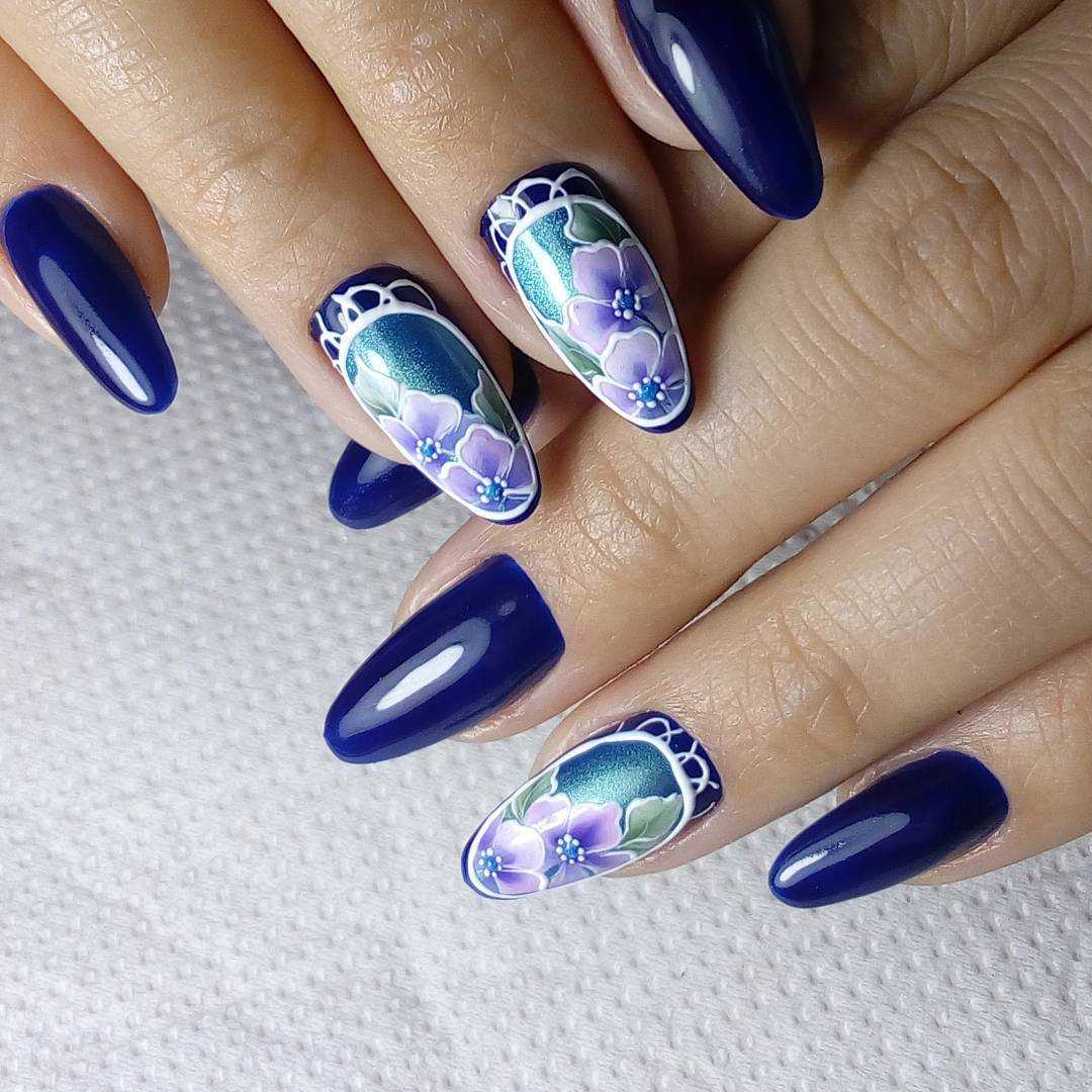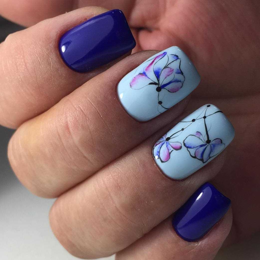Оригинальный маникюр с непревзойденными синими цветами выглядит очень привлекательно и оригинально. Можете смело выбрать любую из представленных идей и удивлять окружающих своим невероятным и прекрасным нейл-артом.