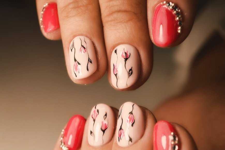 На миндальном фоне шикарно смотрится флористика. В качестве узора чаще всего используются розы. Они не только благородно смотрятся на ногтях, но и могут быть выполнены в самых неожиданных оттенках. Что касается другой флористики, например, с пионами, полевыми цветами, то их лучше выполнять с помощью слайдеров. Готовые переводные наклейки помогут за считанные минуты создать детальный и яркий декор, без ущерба всему дизайну.