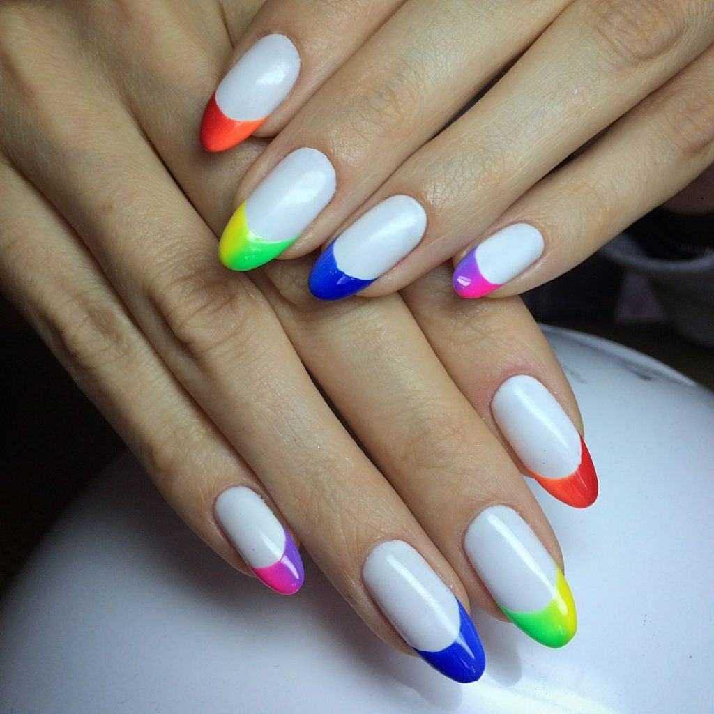 Это особенно хорошо заметно на пухлых и коротких руках. Яркий френч подойдет для праздника и просто отдыха.