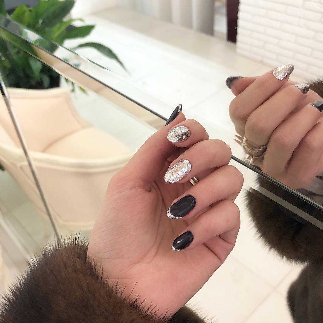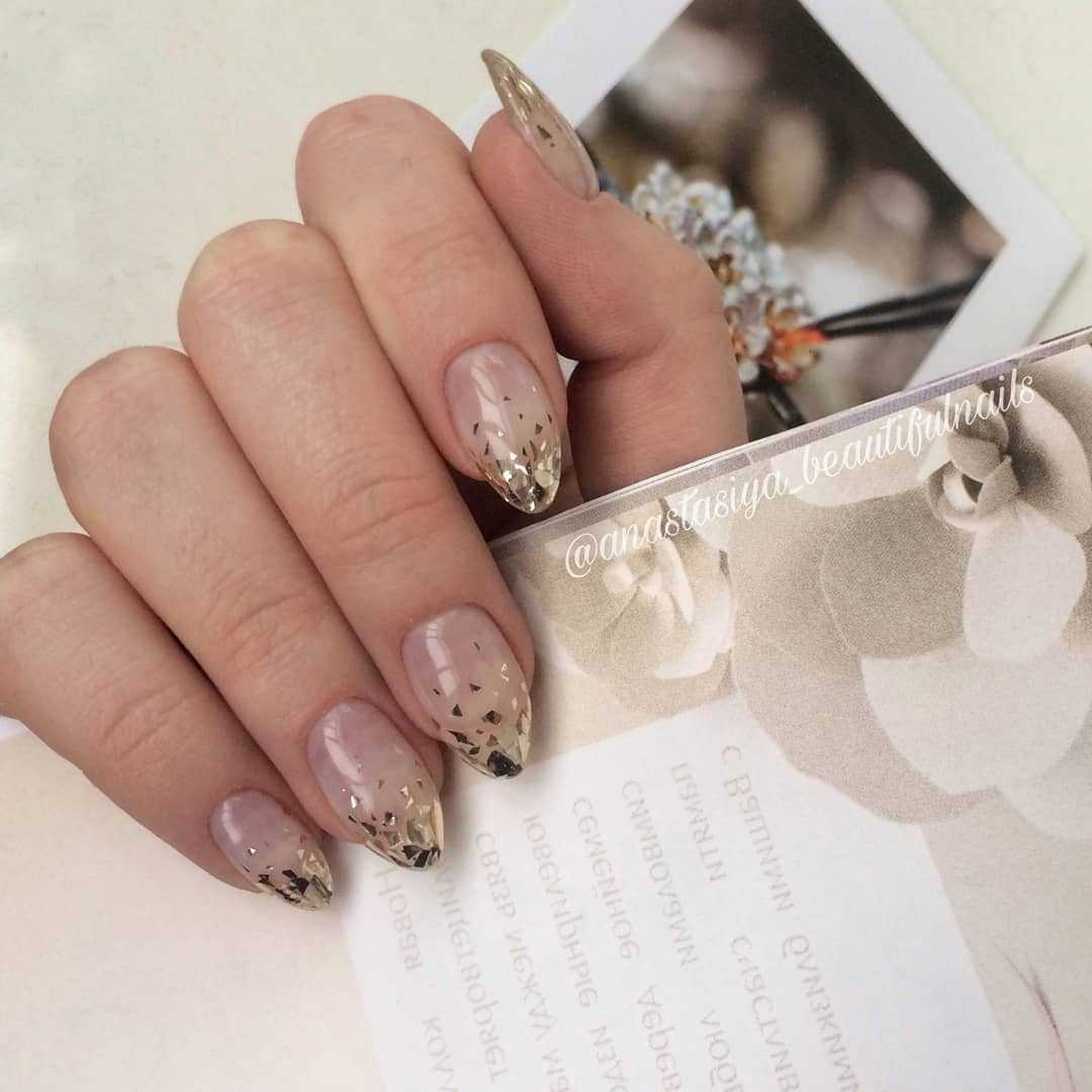 Фольга шикарно соединяется с классическим нюдом, любыми яркими тонами и даже абстракционизмом. Глиттеры, стразы и втирки также хорошо дополняют металлический слой.