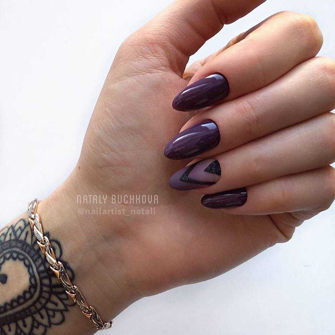 В отличие от глянцевых ногтей, матовые смотрятся намного интересней, аккуратней и изящней. Одни из самых популярных и бархатистых в этом сезоне – маникюр сливового или серого цвета. Особенно оригинально будет смотреться однотонный матовый маникюр с добавлением блестков или камней. Отметим, что этот вариант отлично подойдет к праздничному нейл-арту. Вот как такое покрытие выглядит на ногтиках!