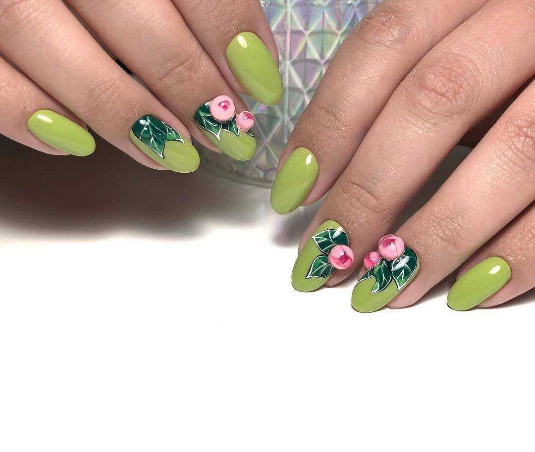 Поскольку цветы нравятся абсолютно всем женщинам без исключения, даже если речь идёт о колючих кактусах или невзрачных на первый взгляд незабудках, нейл-мастера постоянно усовершенствуют свои художественные навыки и украшают женские ноготки всевозможными веточками, соцветиями, нераскрывшимися бутонами и целыми клумбами. Такой маникюр смотрится невероятно женственно и дополнит любой образ романтичными нотками.