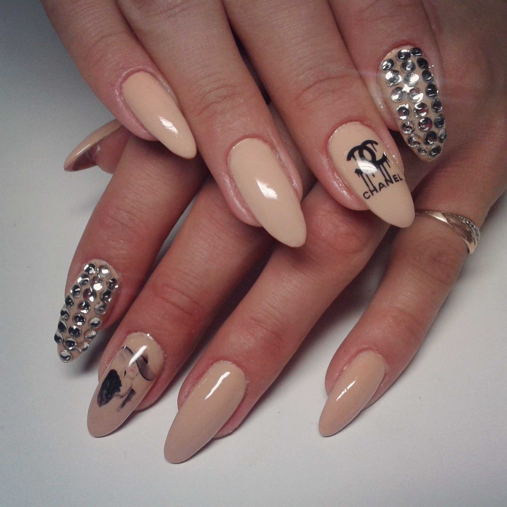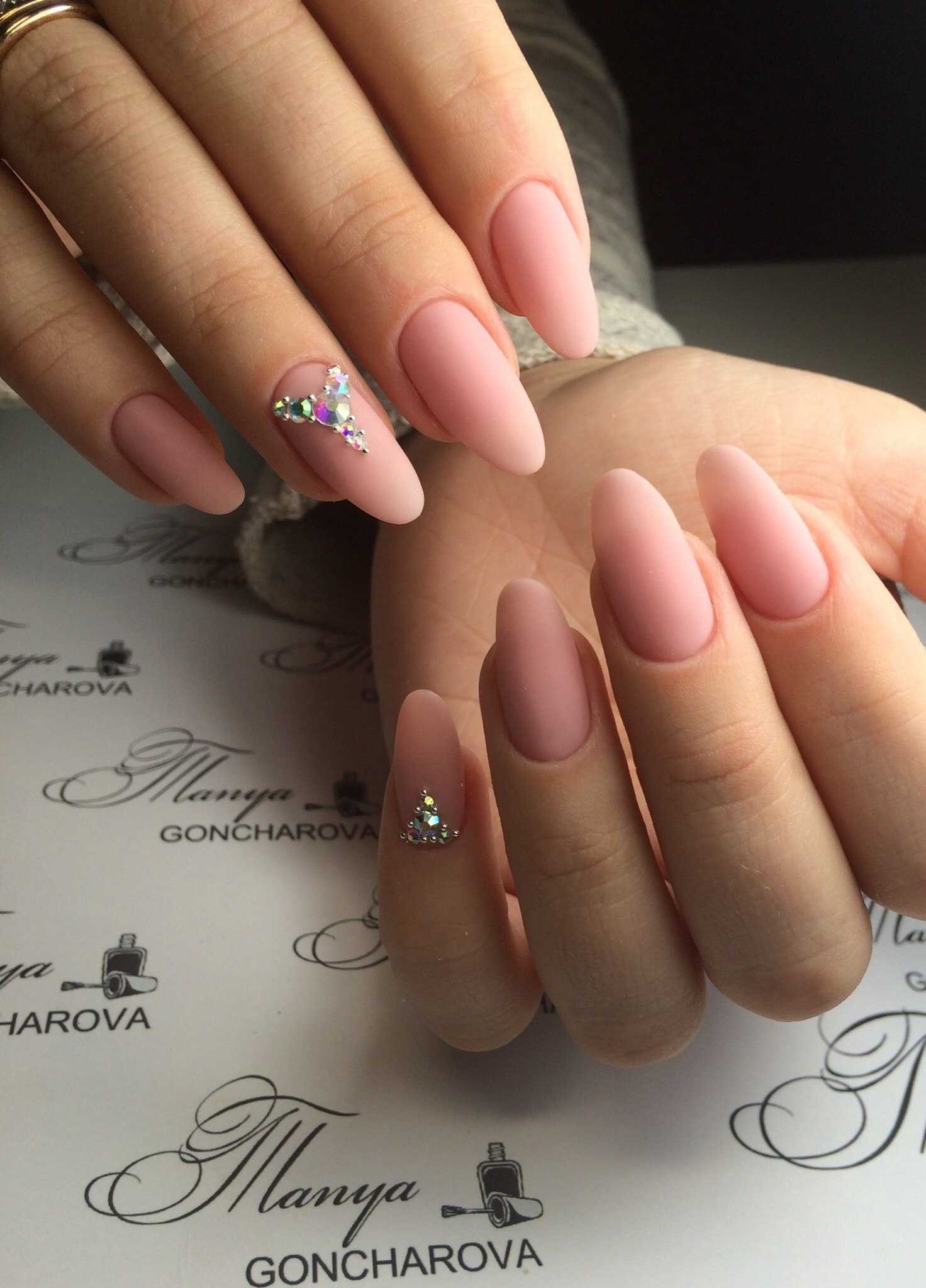 Маникюр со стразами на миндальную форму ногтей