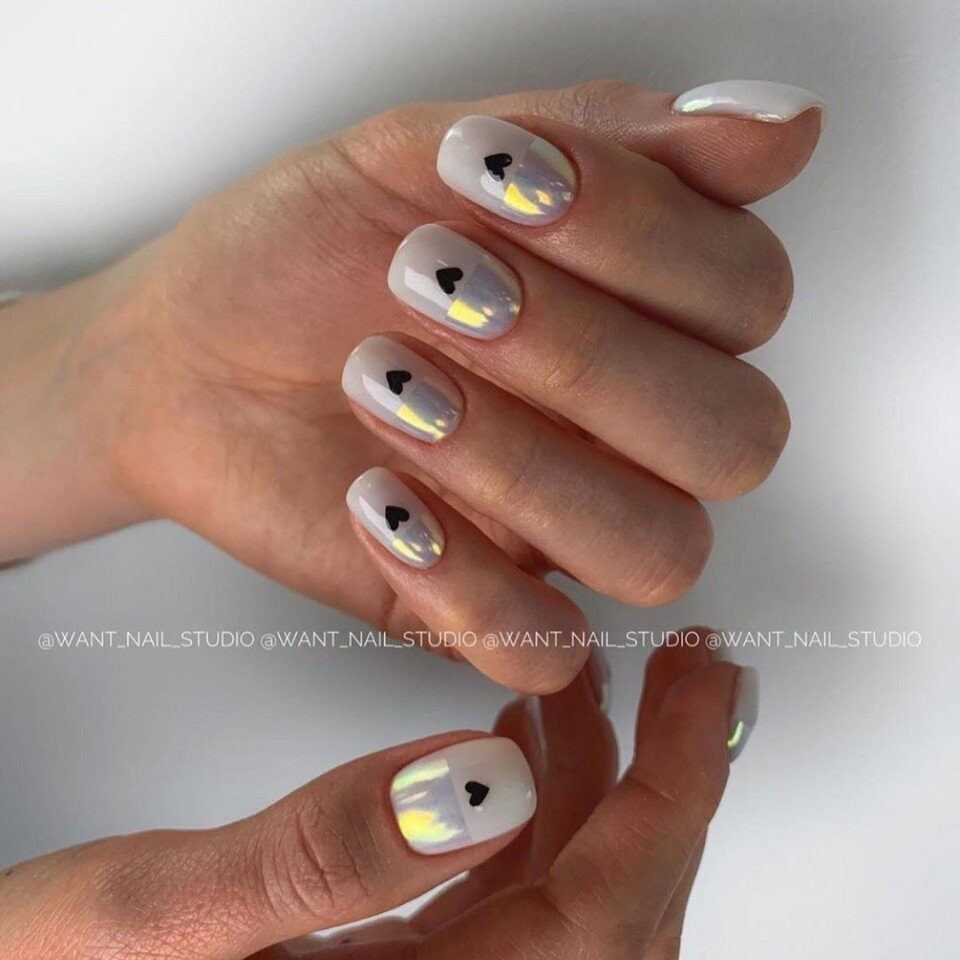 Белый сделает темные акценты более мягкими. Белая вуаль или геометрия, контрастные минималистичные узоры украсят маникюр и создадут на них акцент.