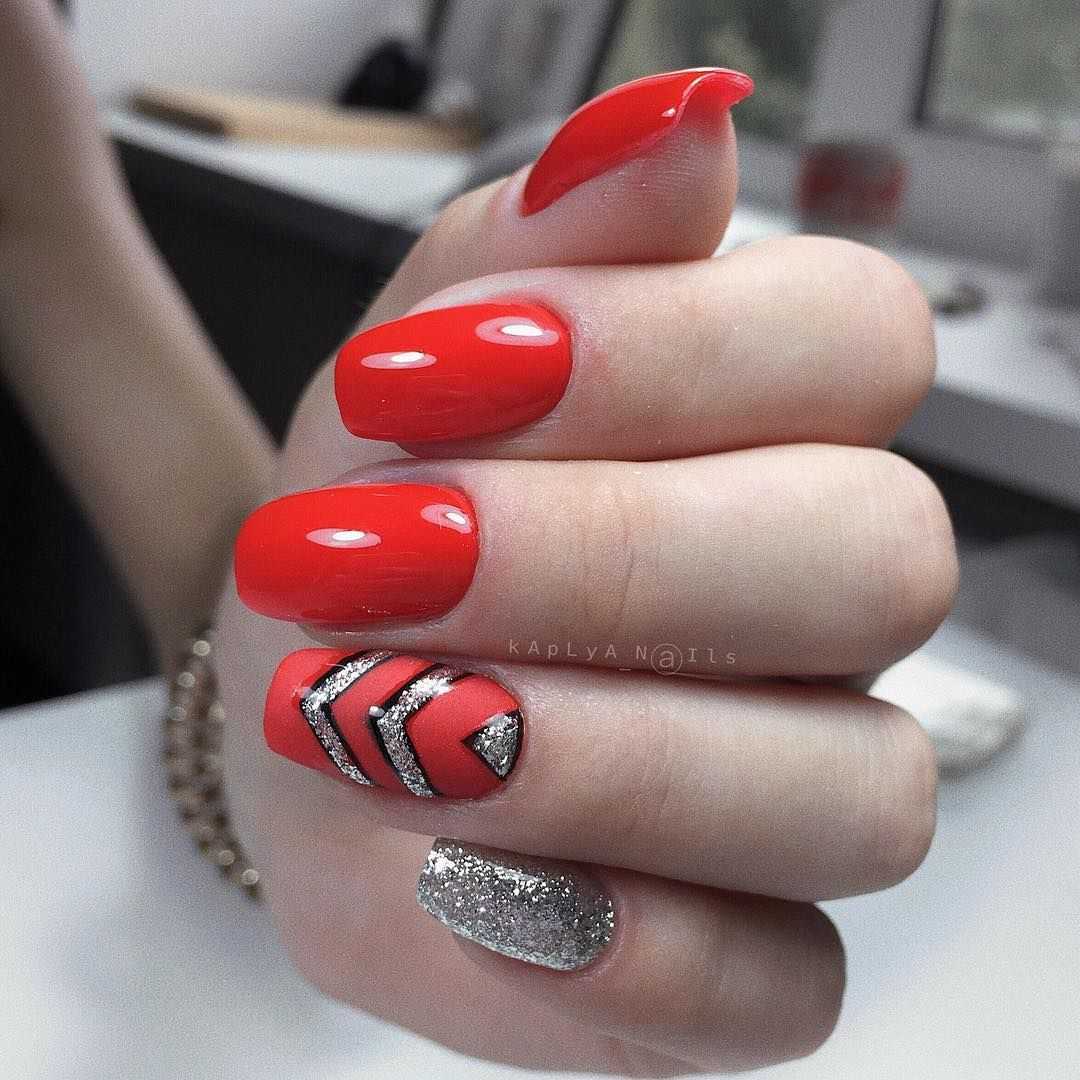 Геометрия — тренд сезона. Для дизайна полосок выбирают контрастный цвет — серебро, золото, красный, черный или белый. Даже одна полоска (поперек или вдоль) способна существенно изменить общий вид ногтей, сделав их более стильными.