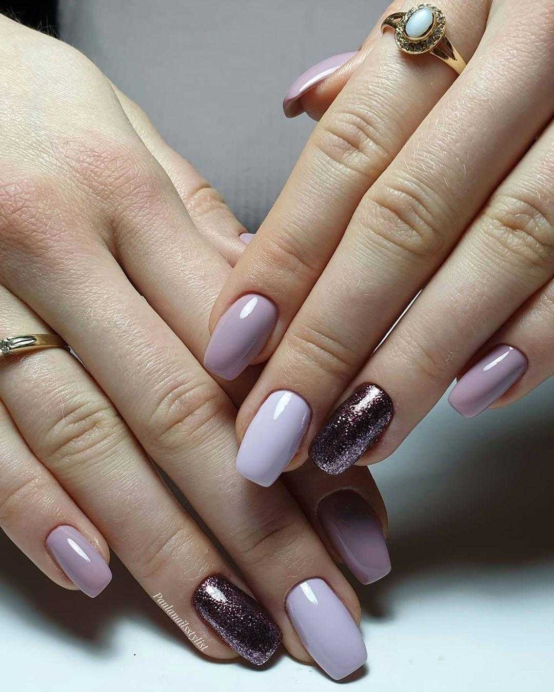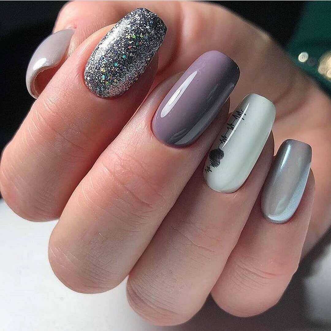 Дополнение серых ноготков фиолетовым напоминает по виду волшебную дымку, которая мягко расстилается над водной гладью во время заката.