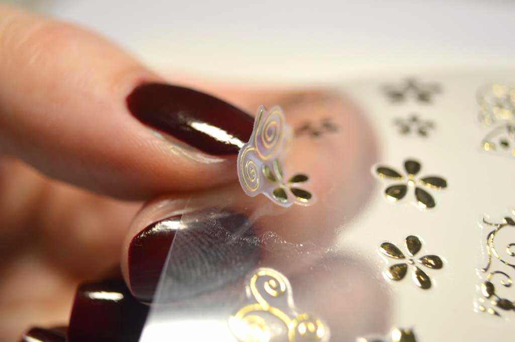Как правильно наклеить наклейки такого типа на ногти? Для этого вам нужно аккуратно отделить пленку от основы. Это можно сделать пинцетом. После этого изделие накладывают на ногтевую пластину, разглаживают и закрепляют.