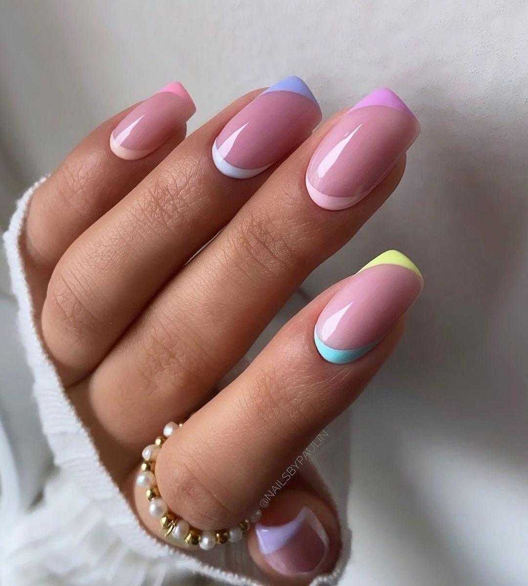 Французский — очень удобный и универсальный вариант. А достаточно нейтральный по настроению френч можно окрасить в голубой или морской зеленый цвет.